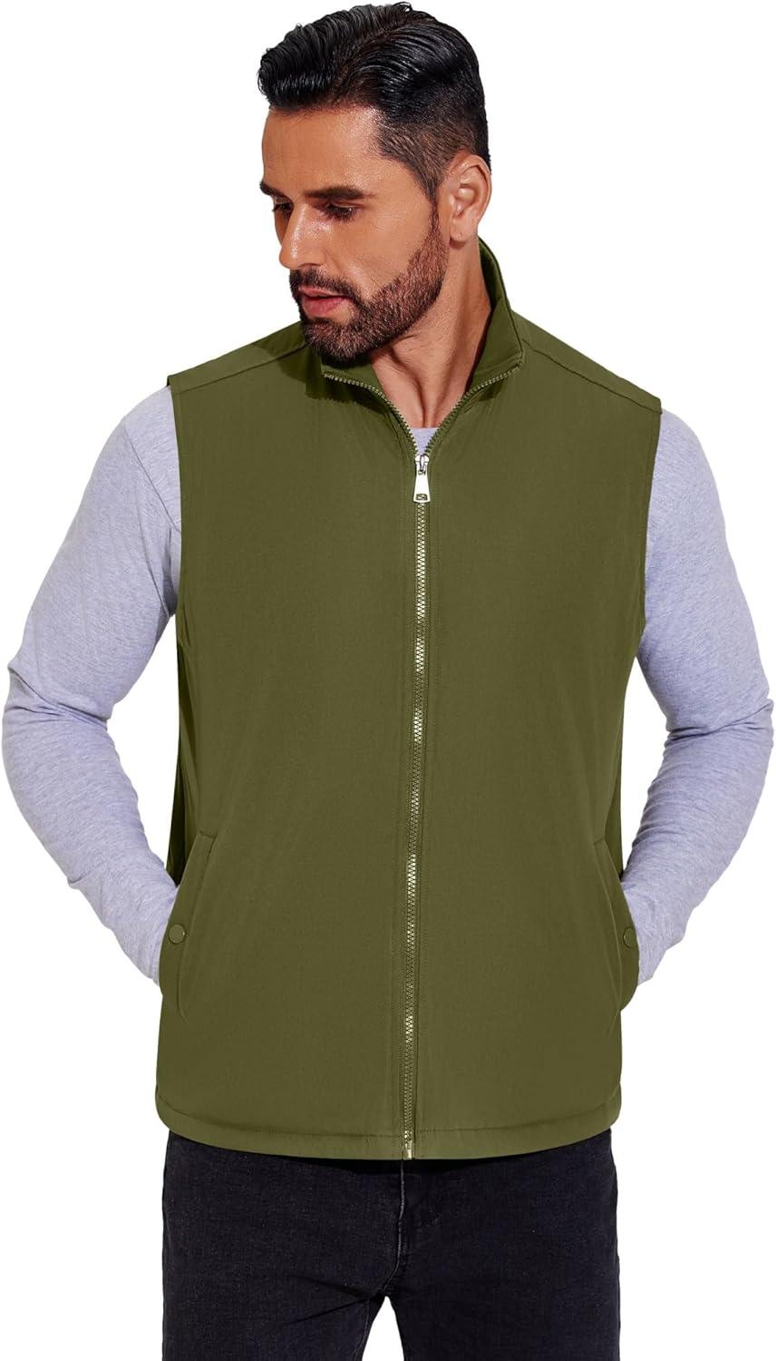 COOFANDY Men’s Casual Outerwear Vest Lightweight Full-Zip Sleeveless Jacket Outdoor Hiking Travel Golf Vest with Pockets(Army Green)