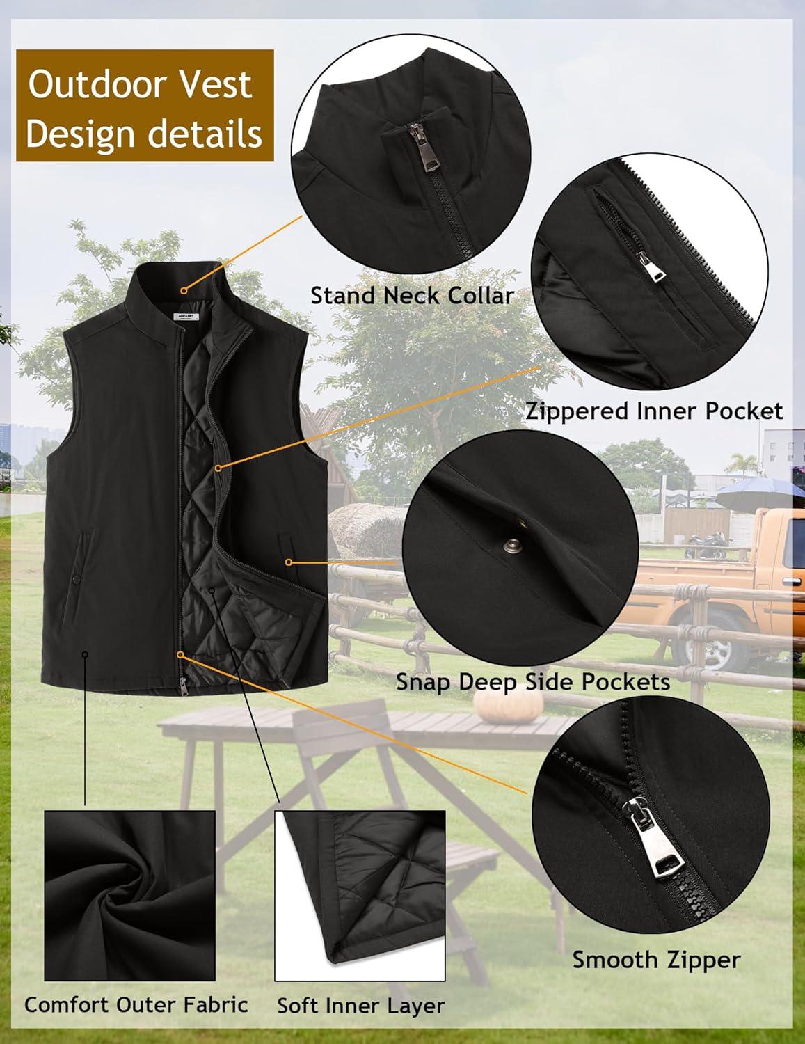 COOFANDY Men’s Casual Outerwear Vest Lightweight Full-Zip Sleeveless Jacket Outdoor Hiking Travel Golf Vest with Pockets(Black)