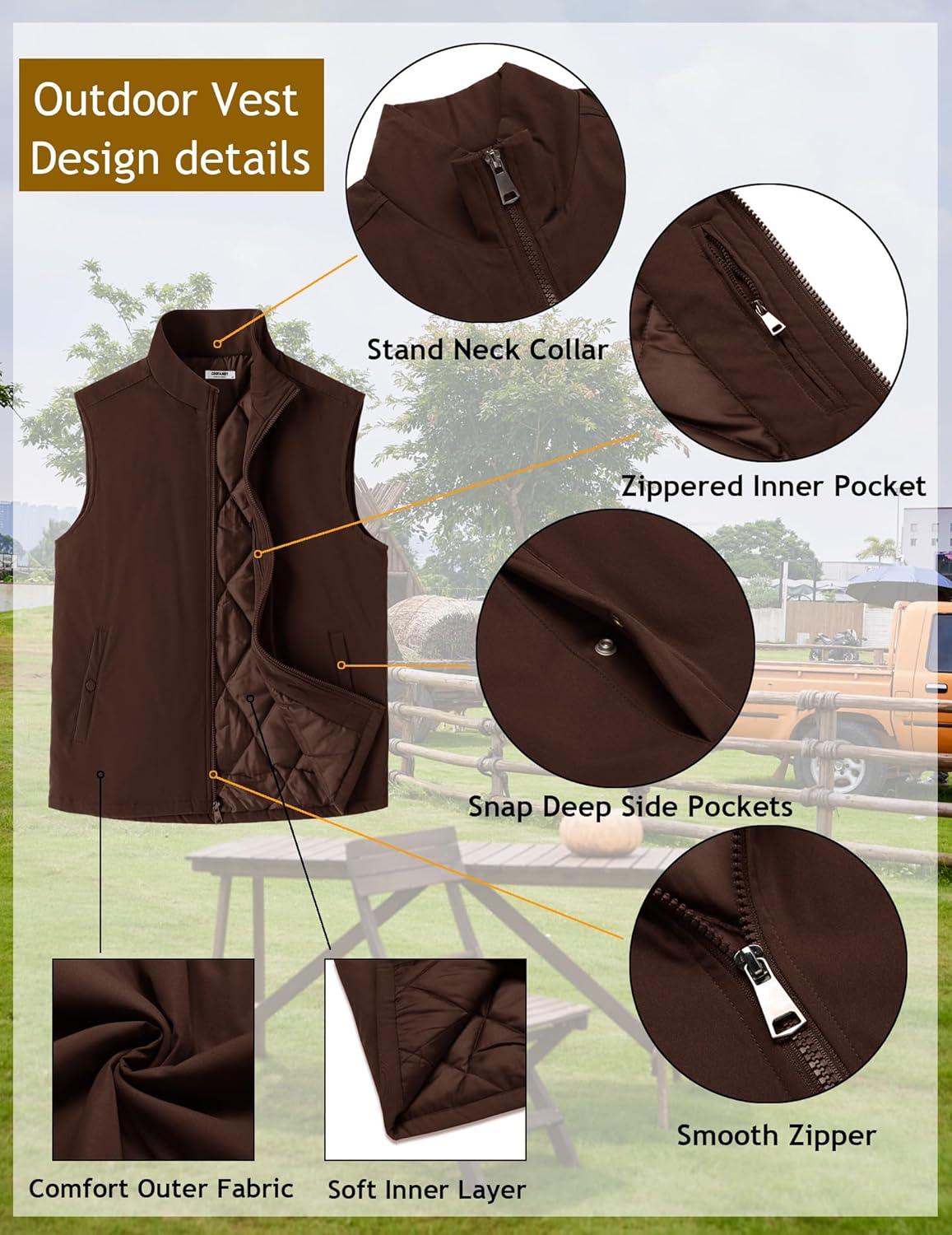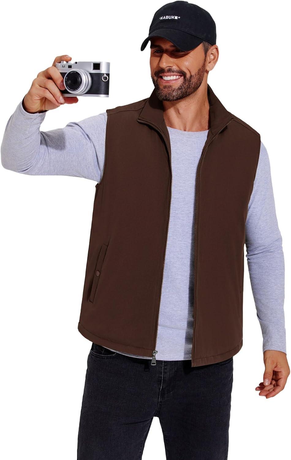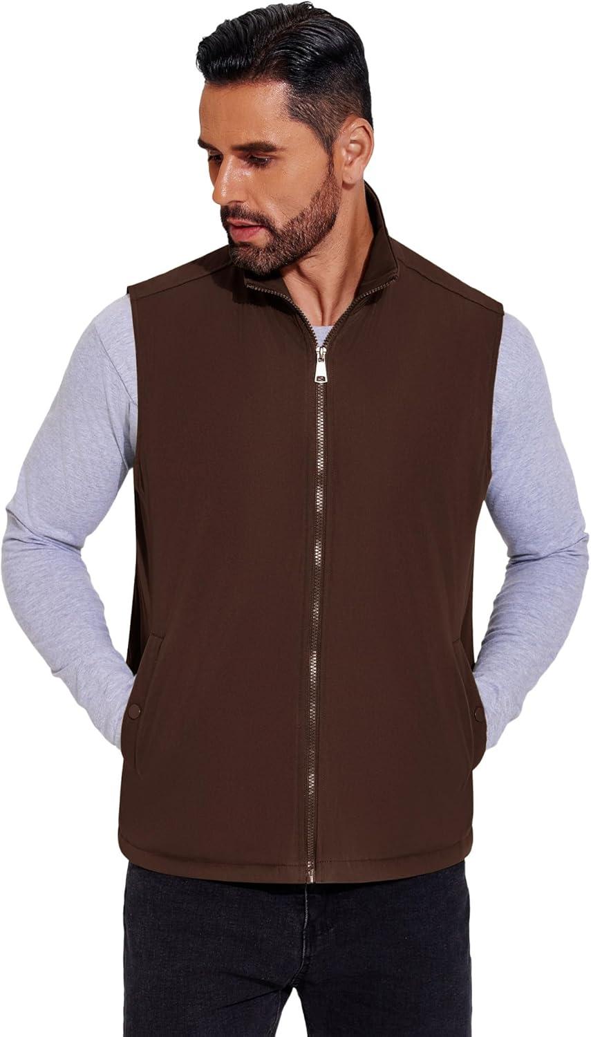 COOFANDY Men’s Casual Outerwear Vest Lightweight Full-Zip Sleeveless Jacket Outdoor Hiking Travel Golf Vest with Pockets(Coffee)
