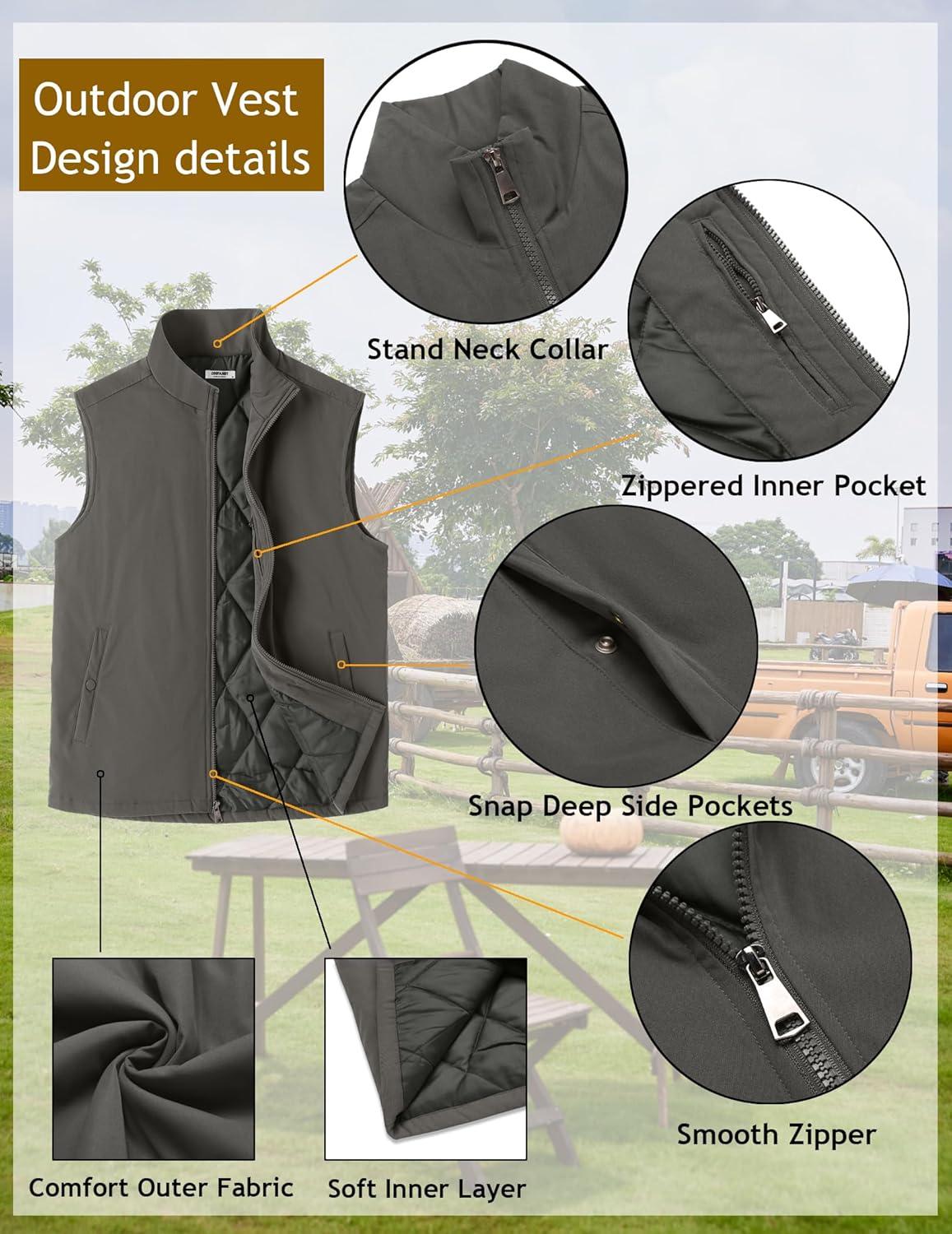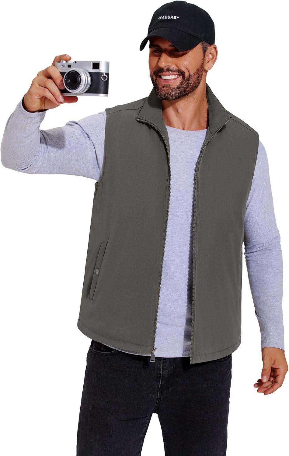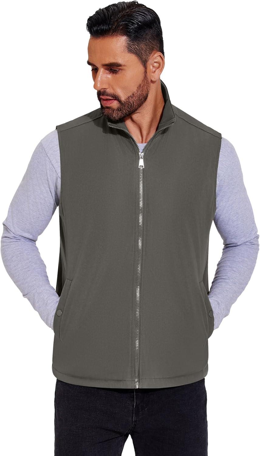 COOFANDY Men’s Casual Outerwear Vest Lightweight Full-Zip Sleeveless Jacket Outdoor Hiking Travel Golf Vest with Pockets(Dark Grey)