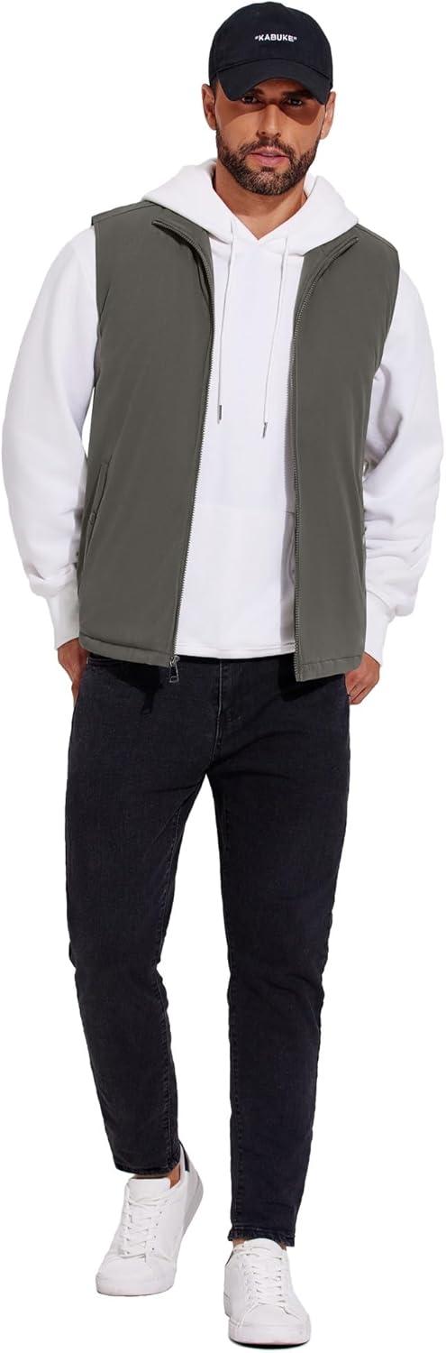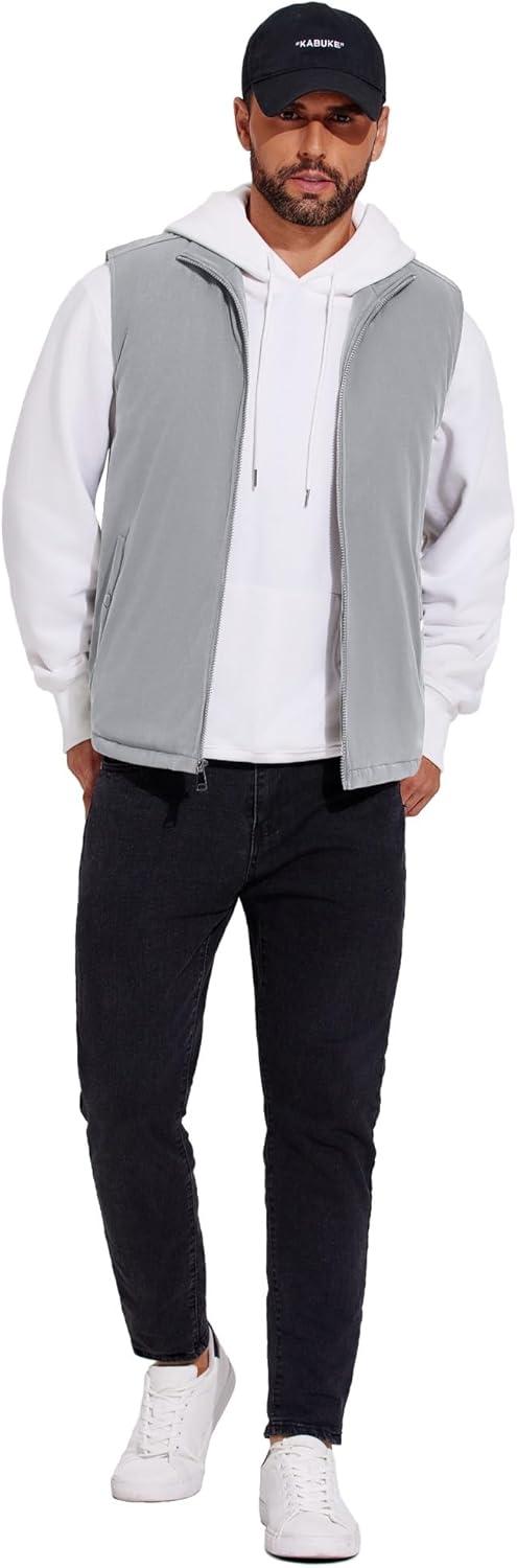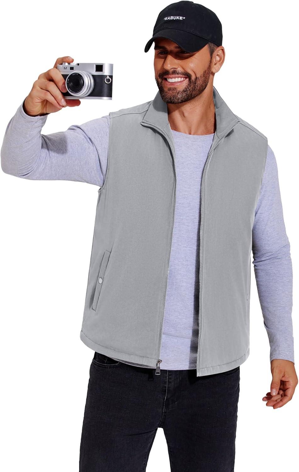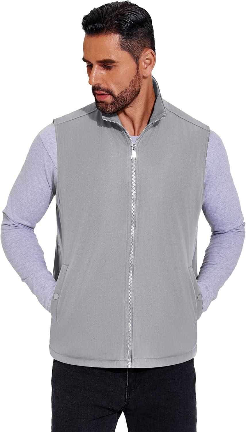 COOFANDY Men’s Casual Outerwear Vest Lightweight Full-Zip Sleeveless Jacket Outdoor Hiking Travel Golf Vest with Pockets(Light Grey)
