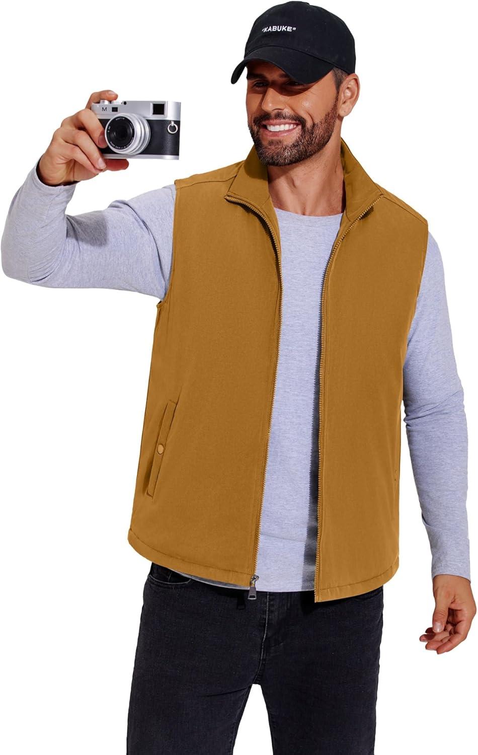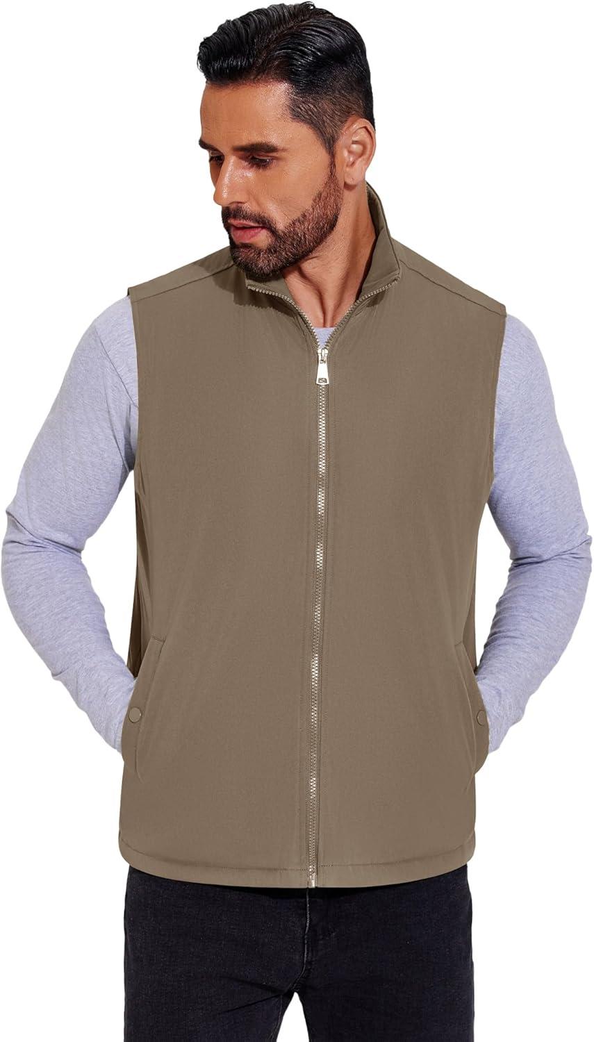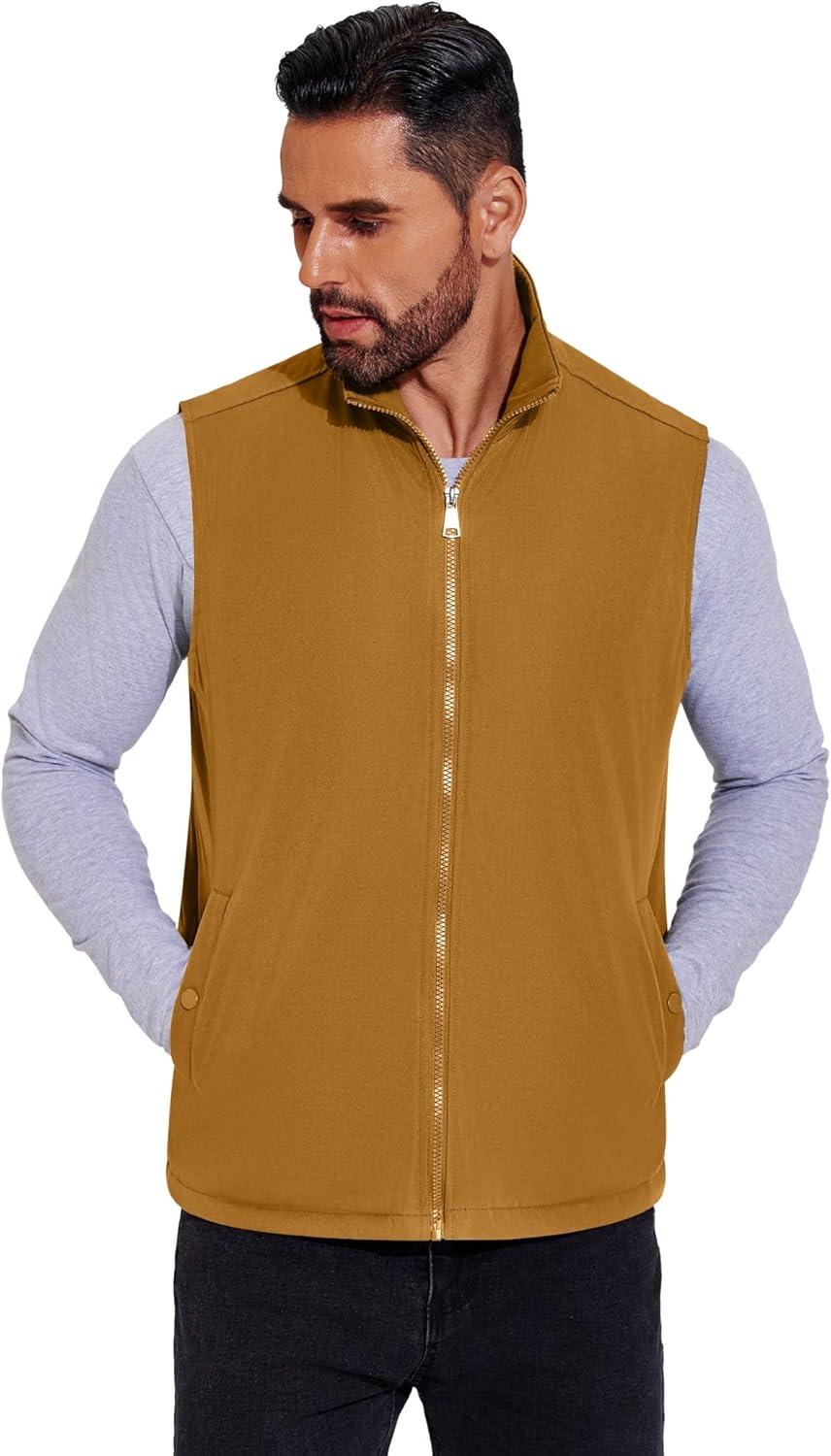 COOFANDY Men’s Casual Outerwear Vest Lightweight Full-Zip Sleeveless Jacket Outdoor Hiking Travel Golf Vest with Pockets(Light Brown)