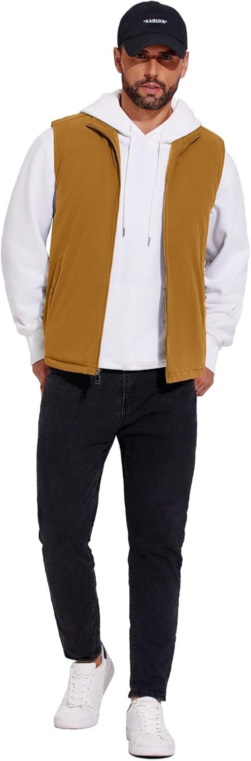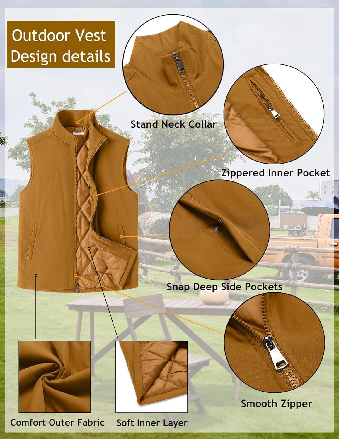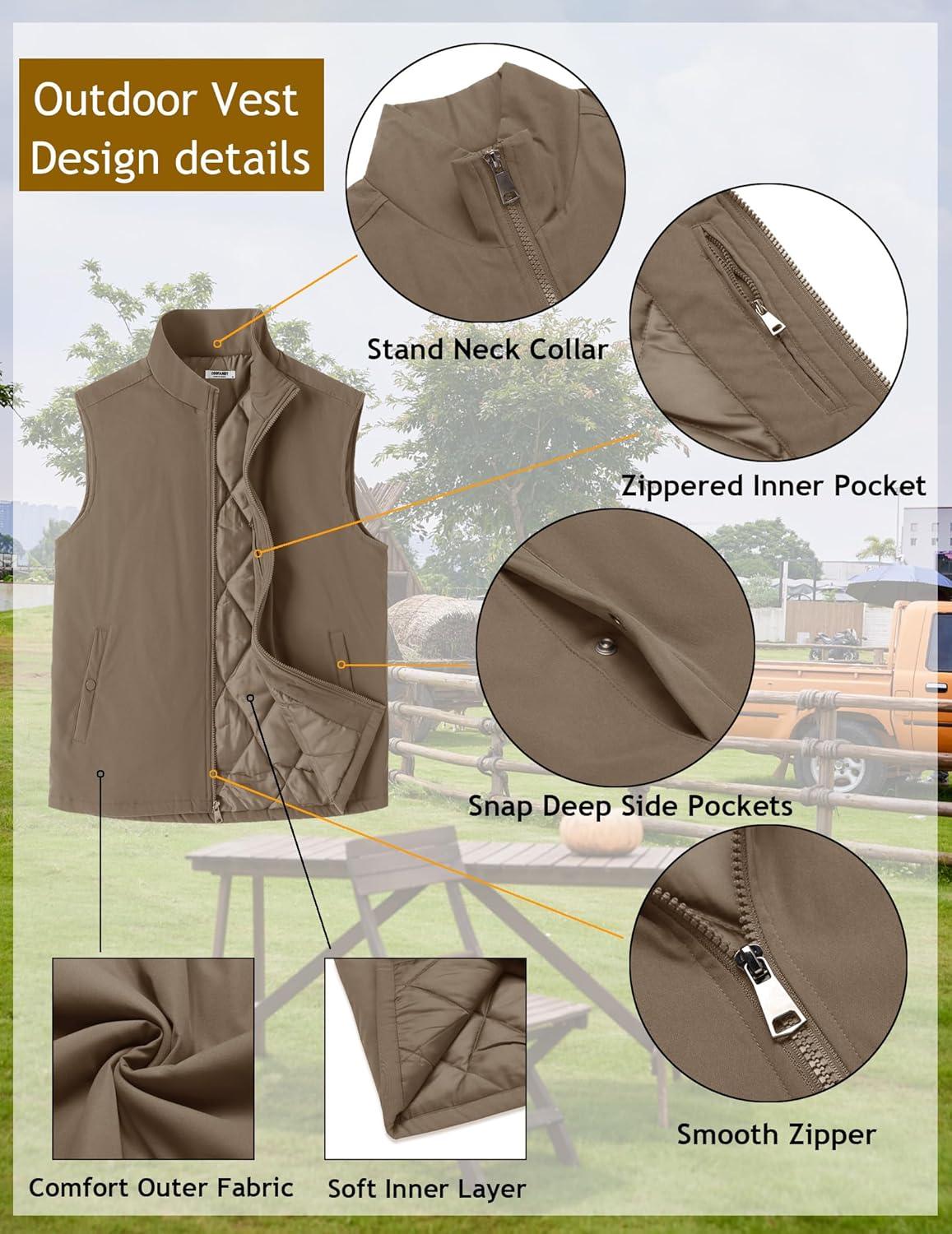 COOFANDY Men’s Casual Outerwear Vest Lightweight Full-Zip Sleeveless Jacket Outdoor Hiking Travel Golf Vest with Pockets(Light Brown)