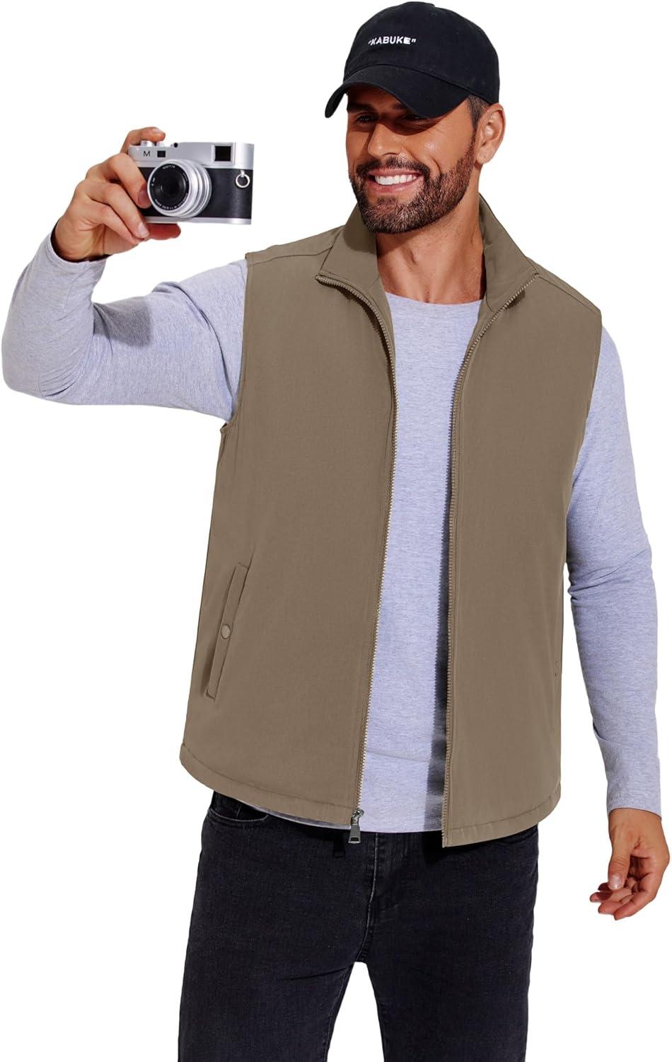 COOFANDY Men’s Casual Outerwear Vest Lightweight Full-Zip Sleeveless Jacket Outdoor Hiking Travel Golf Vest with Pockets(Khaki)