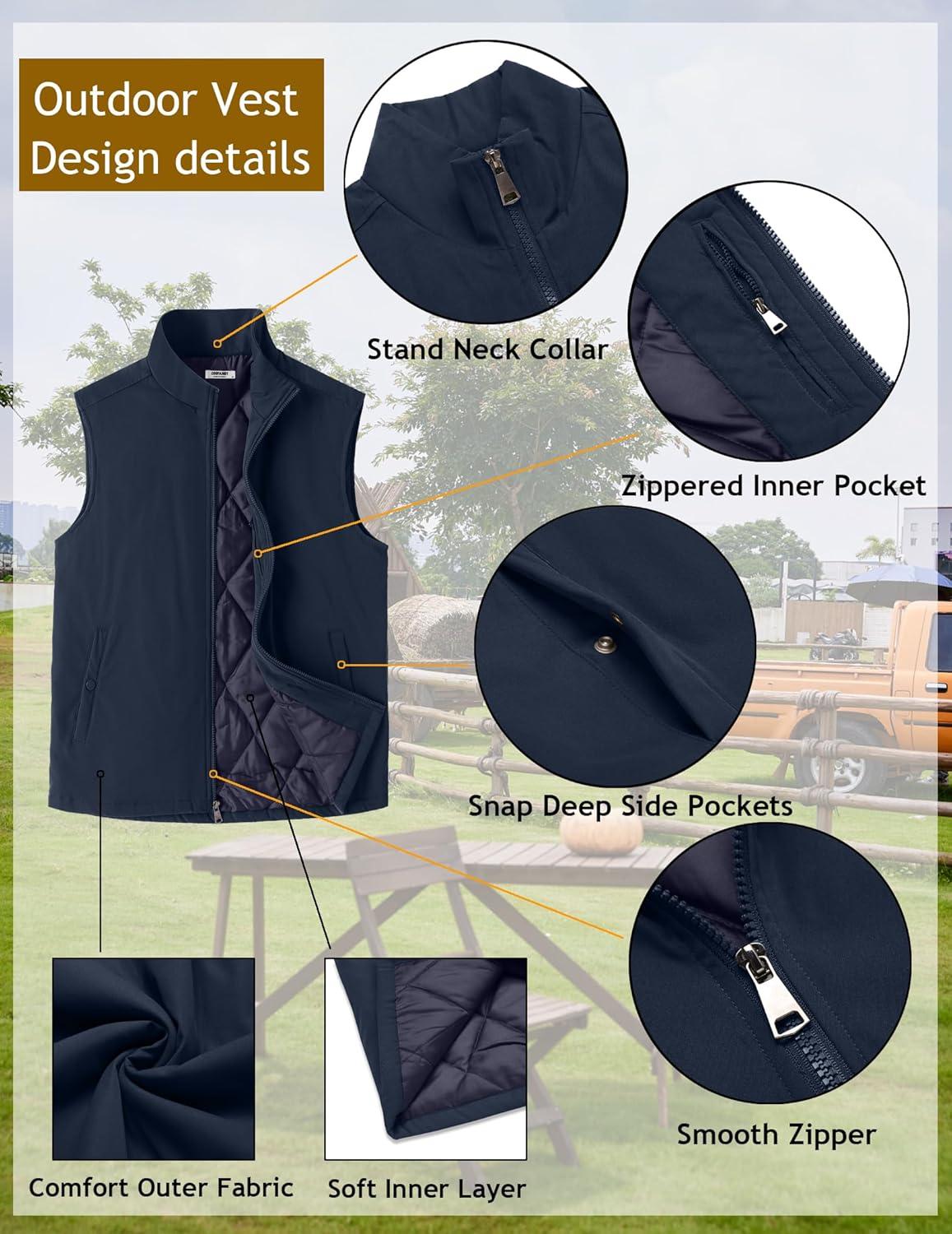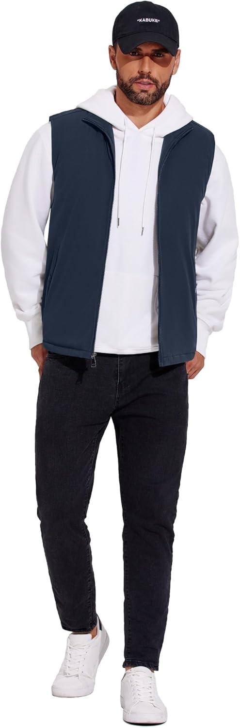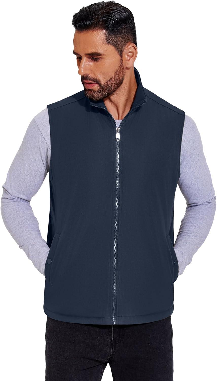 COOFANDY Men’s Casual Outerwear Vest Lightweight Full-Zip Sleeveless Jacket Outdoor Hiking Travel Golf Vest with Pockets(Navy Blue)