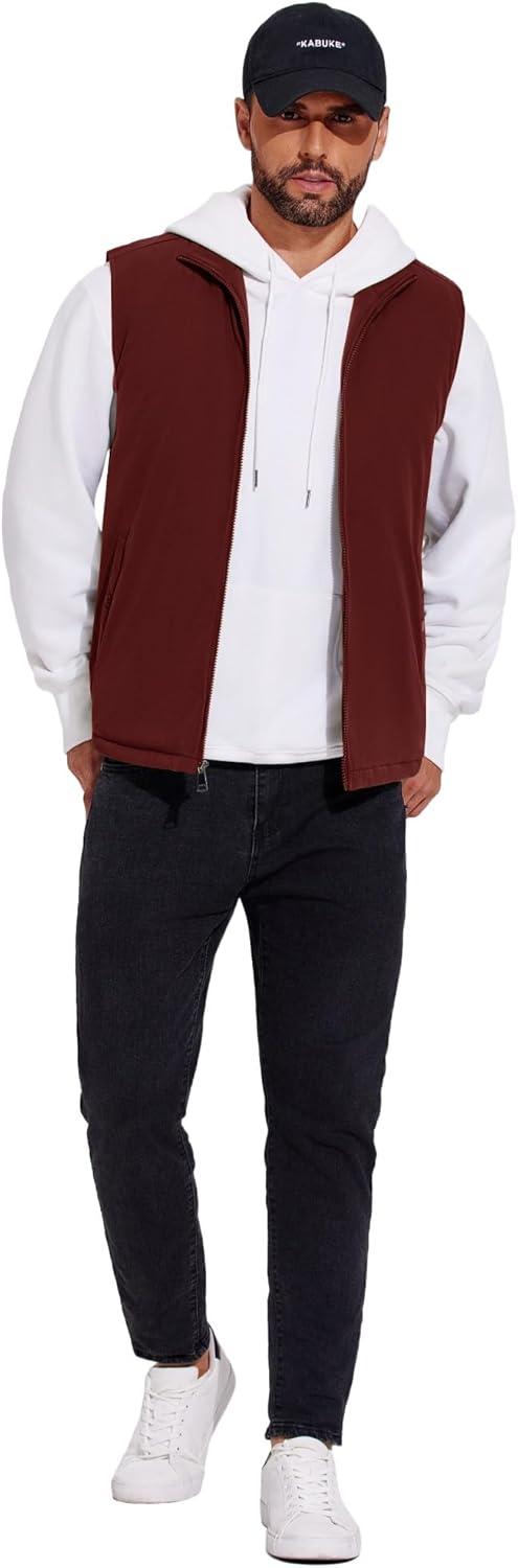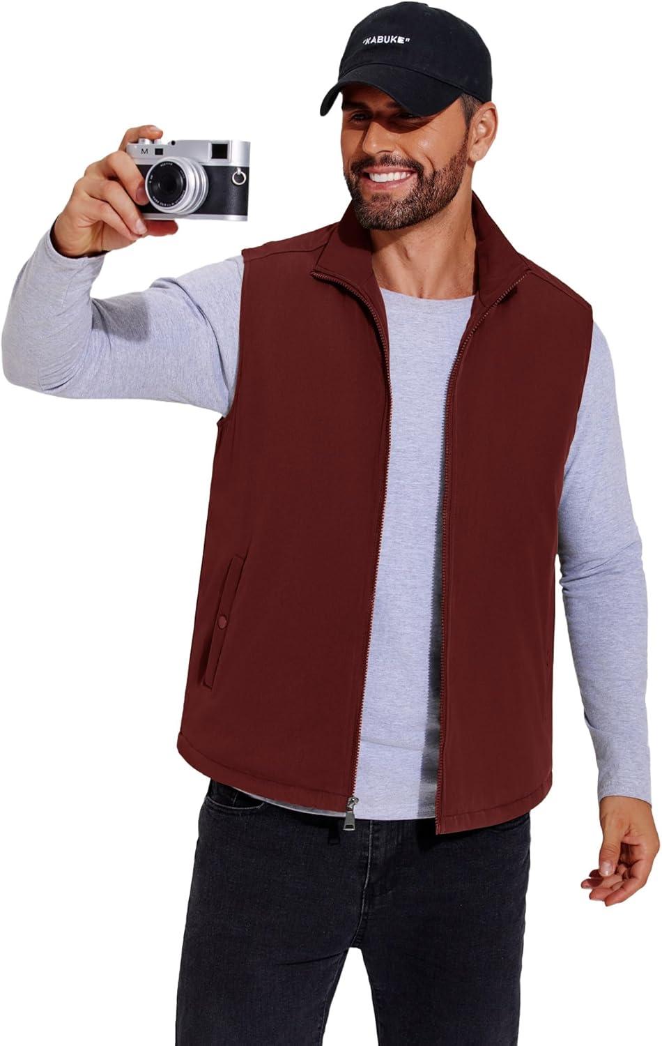 COOFANDY Men’s Casual Outerwear Vest Lightweight Full-Zip Sleeveless Jacket Outdoor Hiking Travel Golf Vest with Pockets(Wine Red)