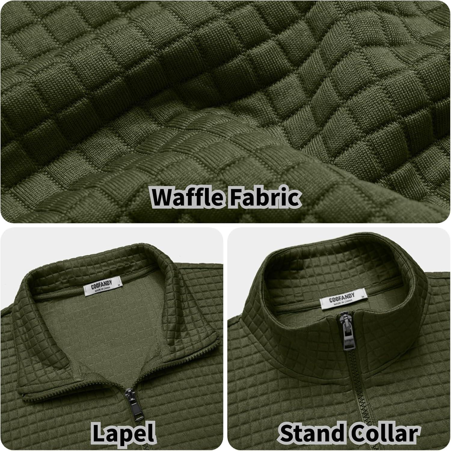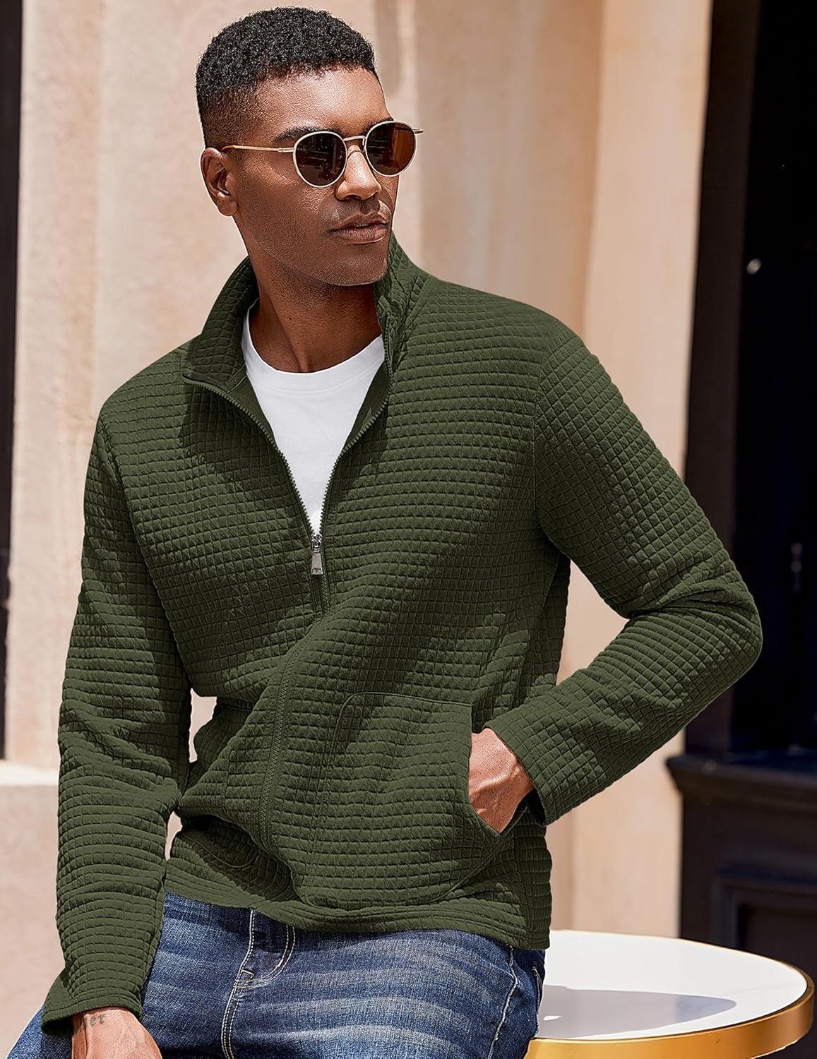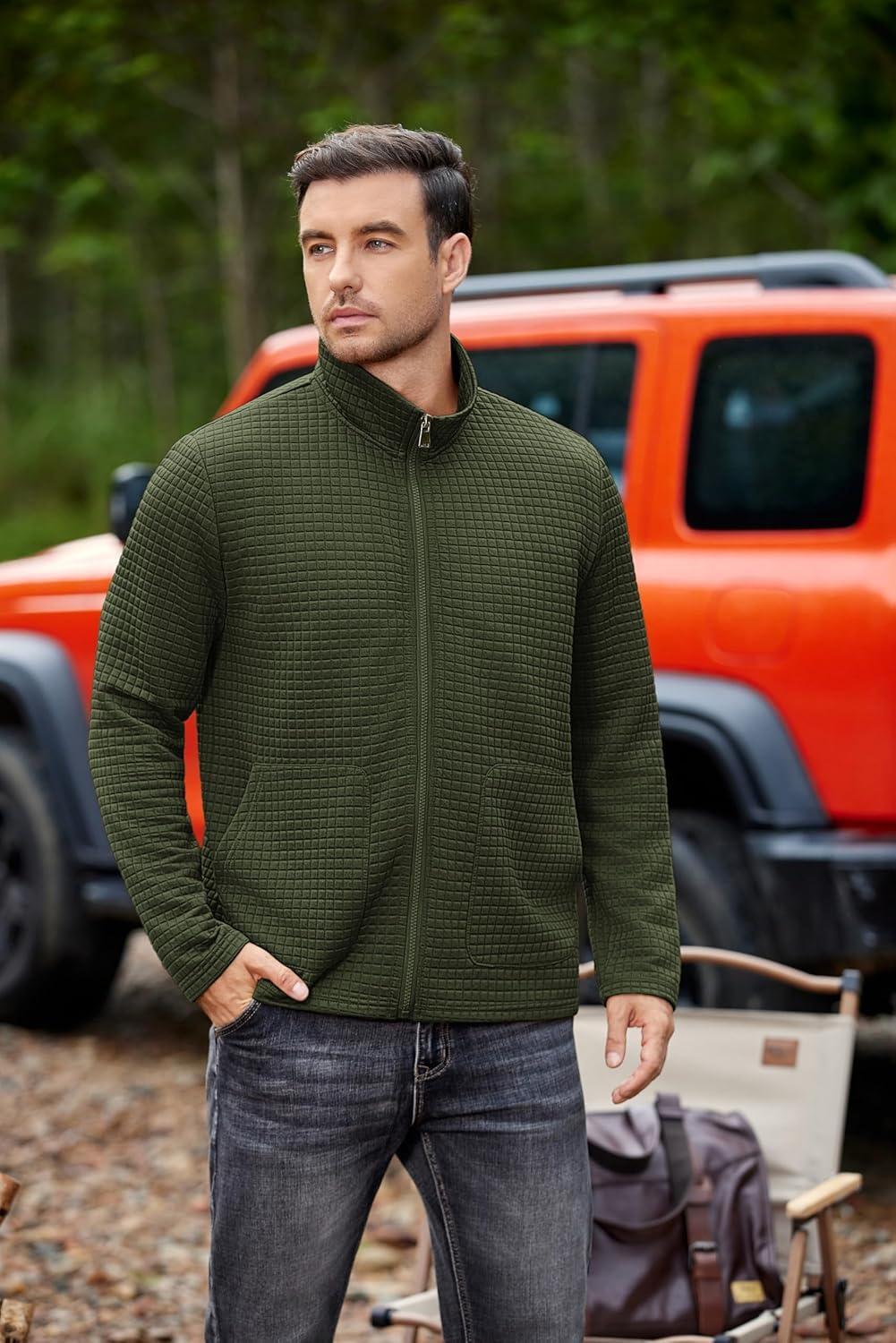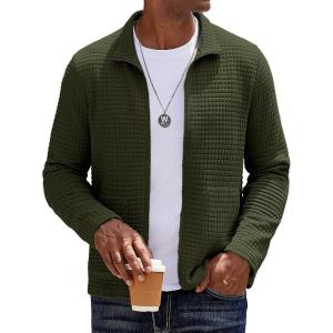 COOFANDY Men’s Lightweight Varsity Jacket Casual Bomber Jackets Waffle Zip Up Sweatshirts with Pocket(Army Green)