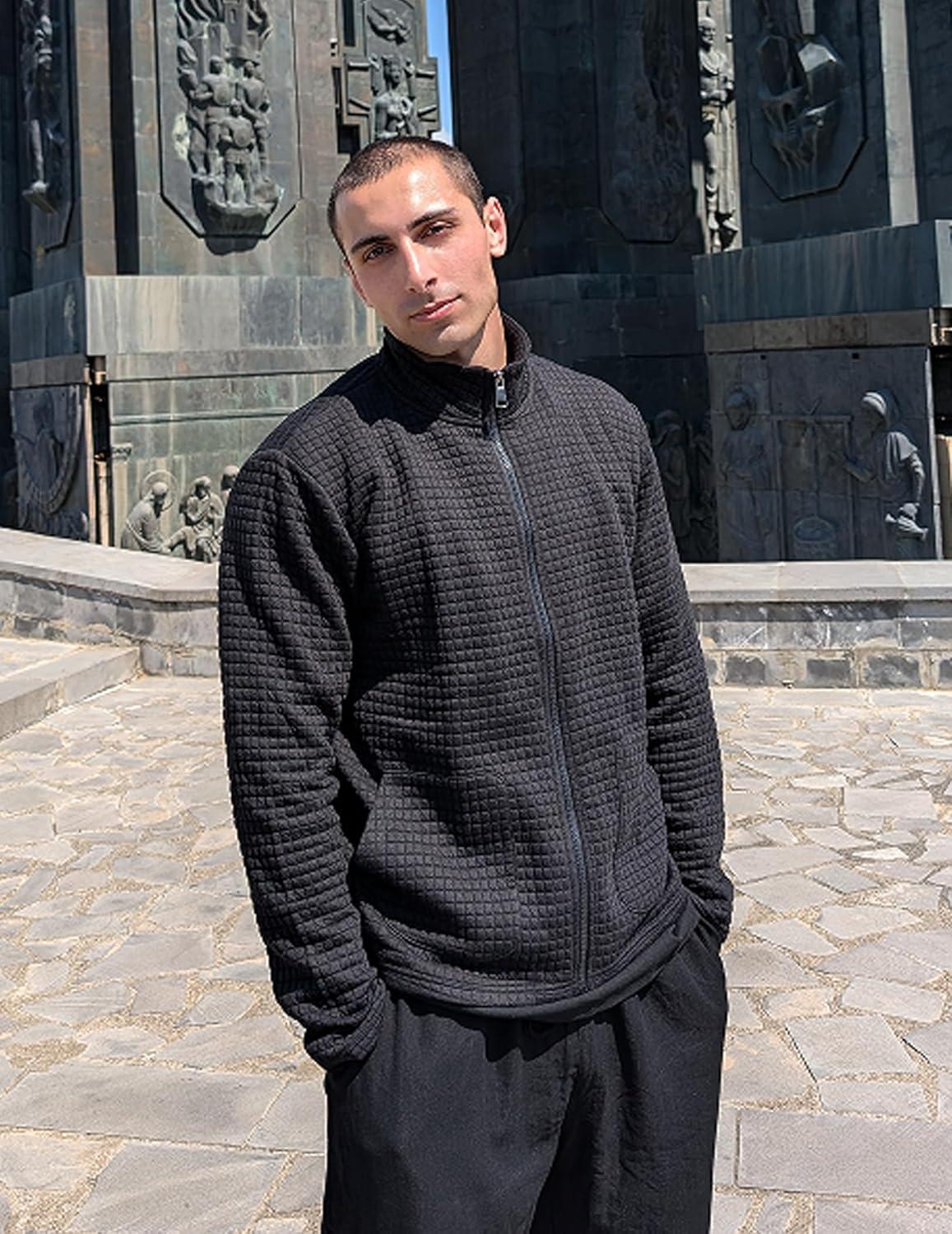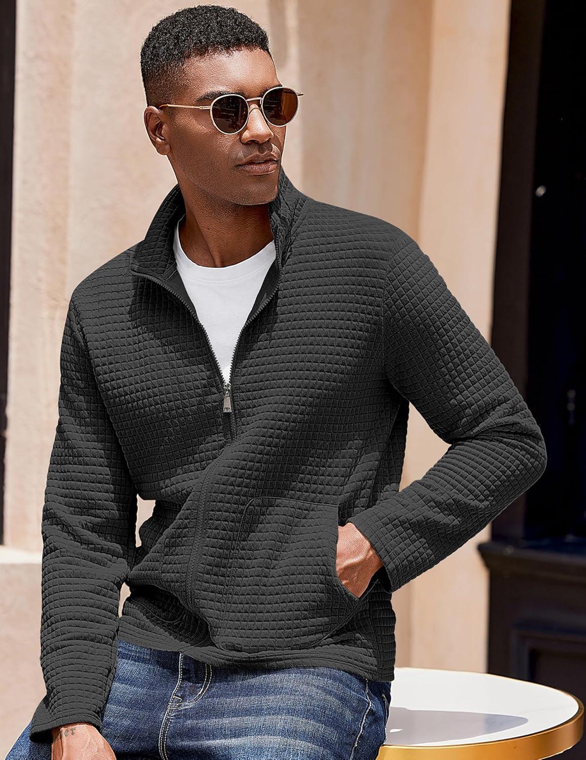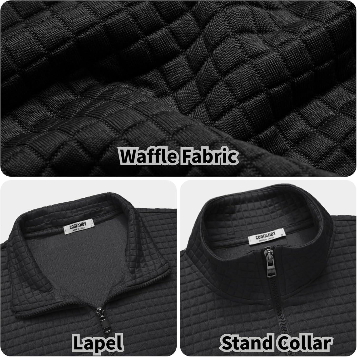 COOFANDY Men’s Lightweight Varsity Jacket Casual Bomber Jackets Waffle Zip Up Sweatshirts with Pocket(Black)