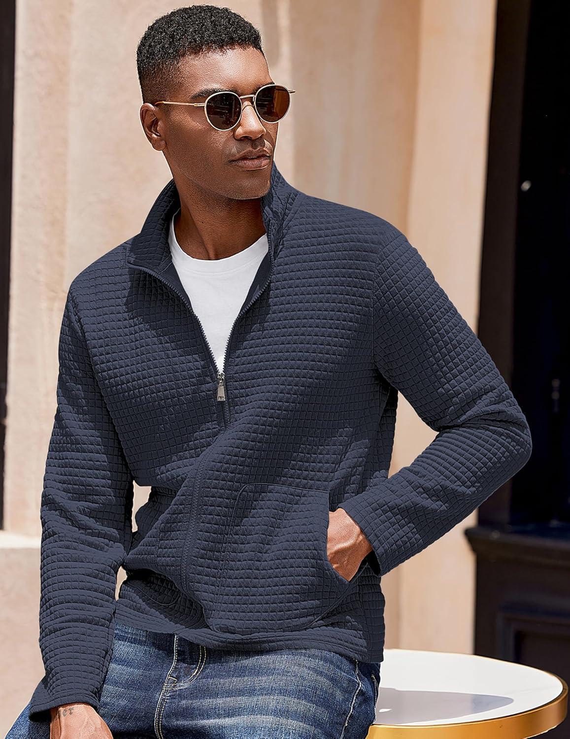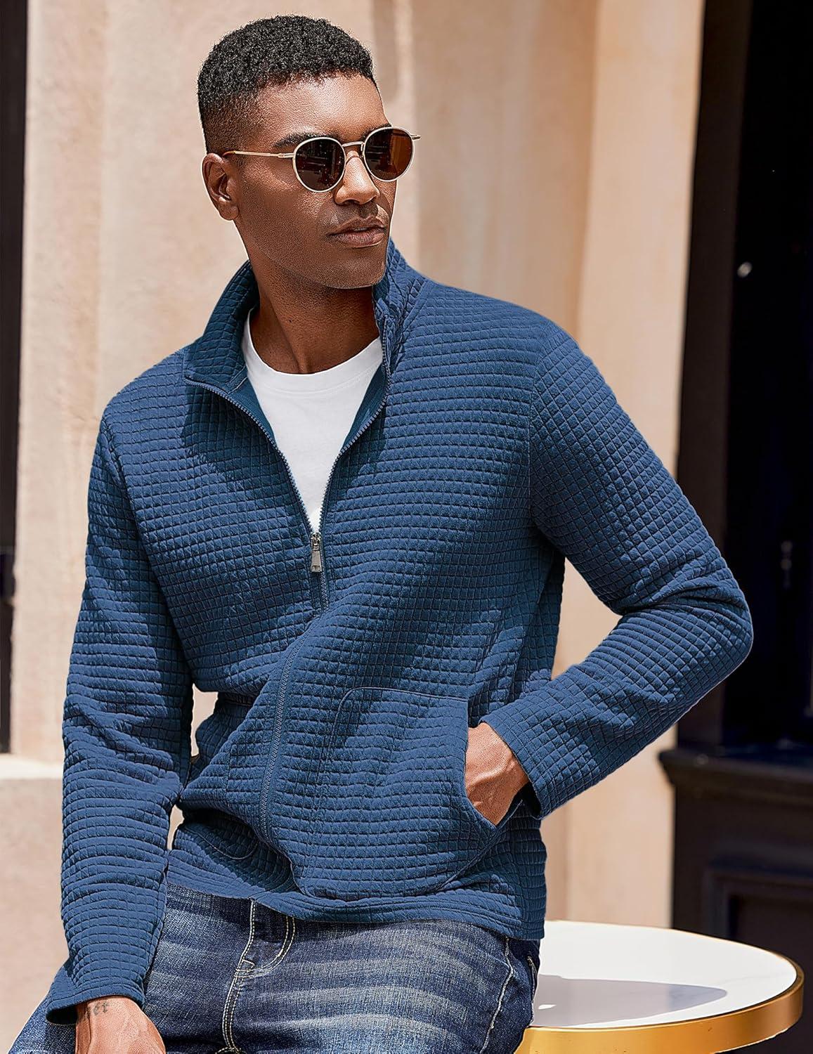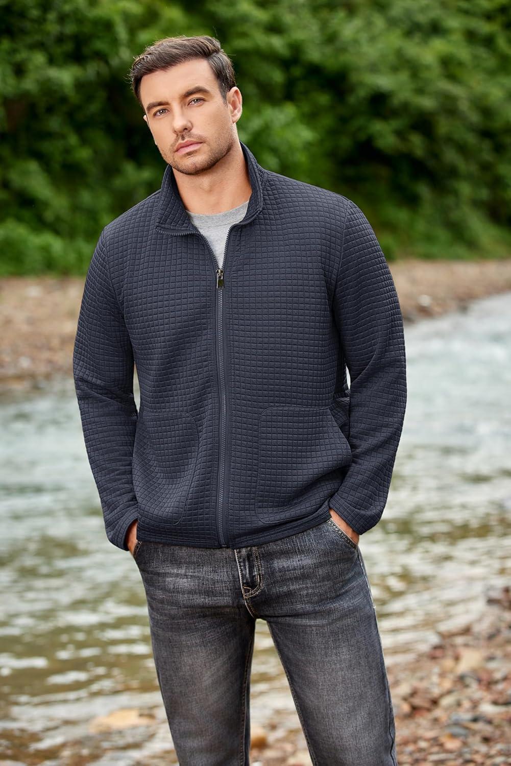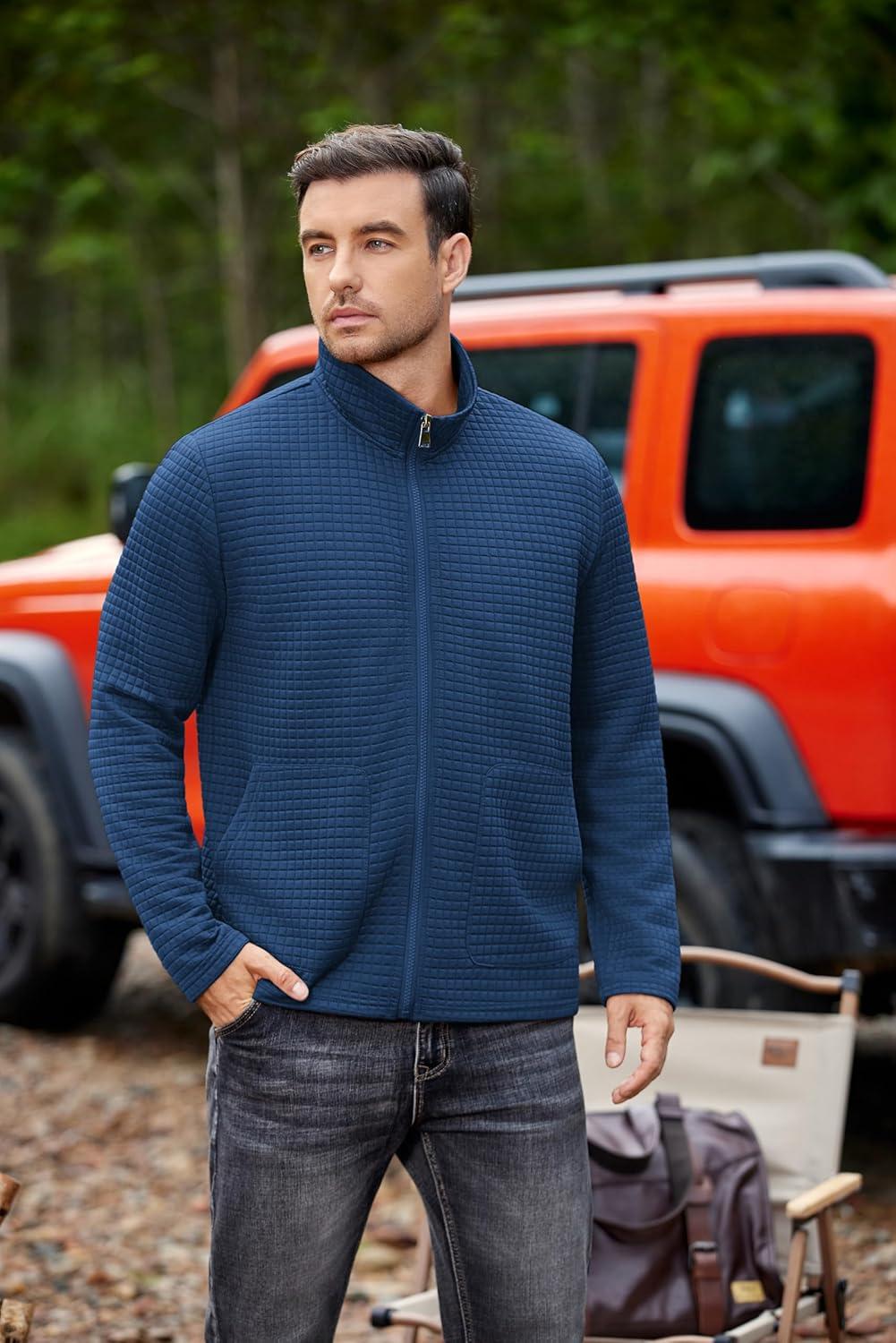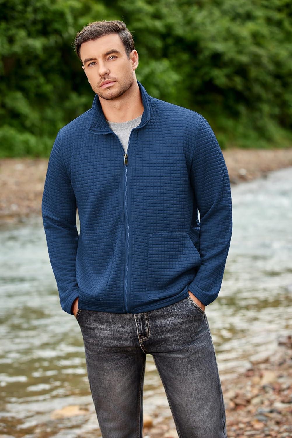 COOFANDY Men’s Lightweight Varsity Jacket Casual Bomber Jackets Waffle Zip Up Sweatshirts with Pocket(Navy)