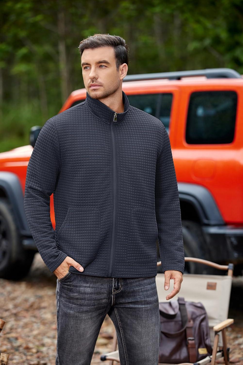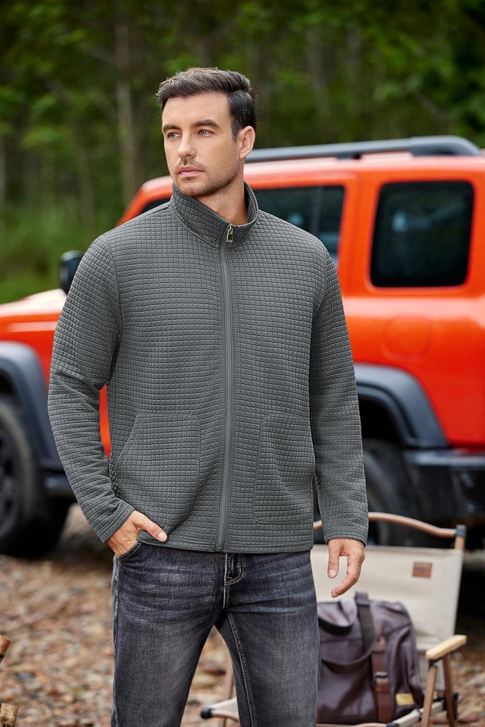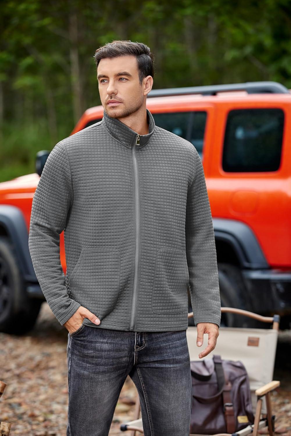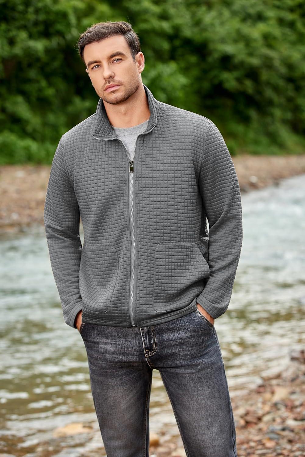 COOFANDY Men’s Lightweight Varsity Jacket Casual Bomber Jackets Waffle Zip Up Sweatshirts with Pocket(Dark Grey)