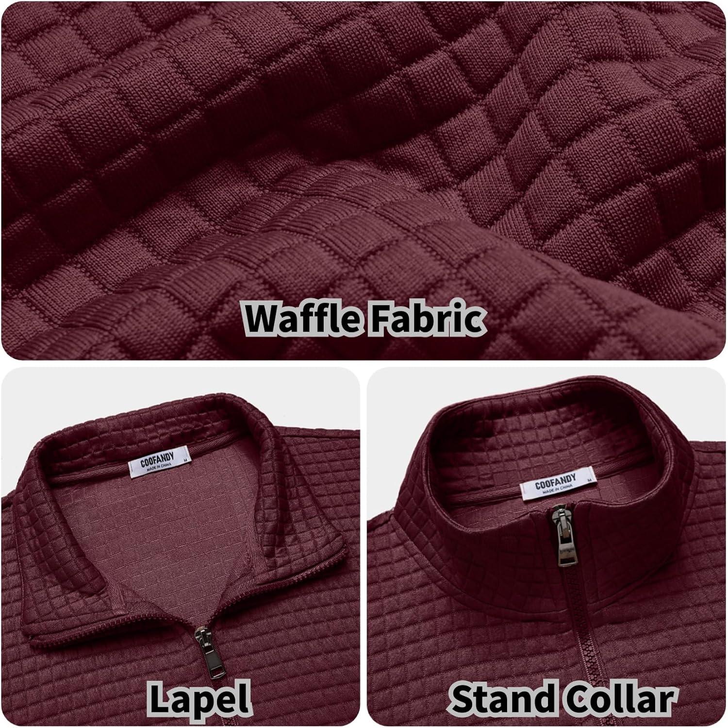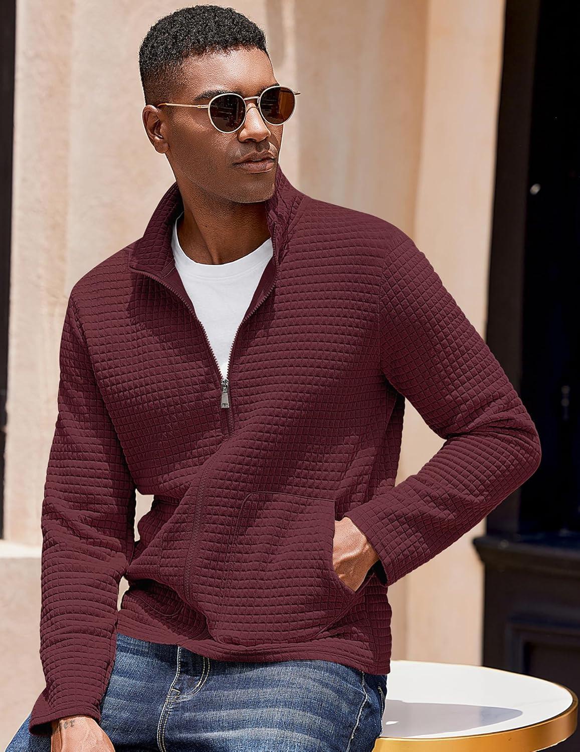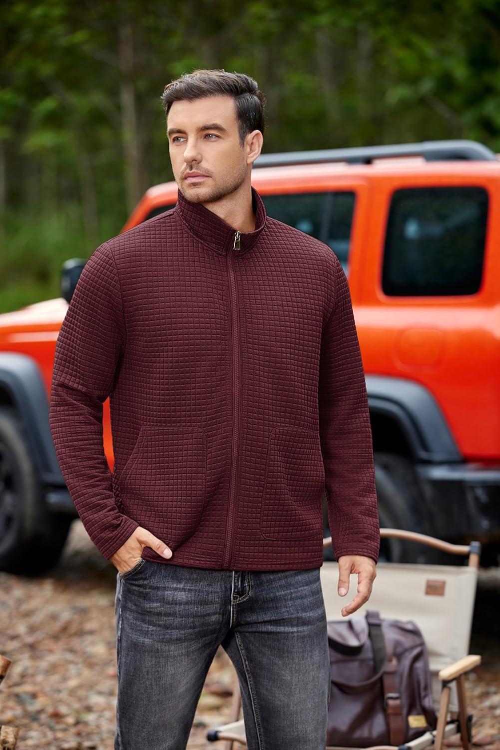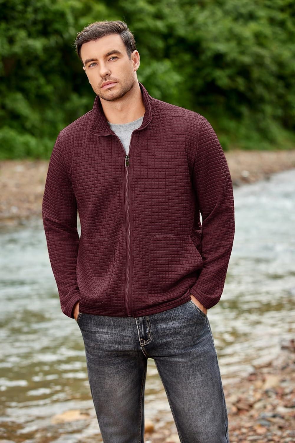 COOFANDY Men’s Lightweight Varsity Jacket Casual Bomber Jackets Waffle Zip Up Sweatshirts with Pocket(Dark Red)
