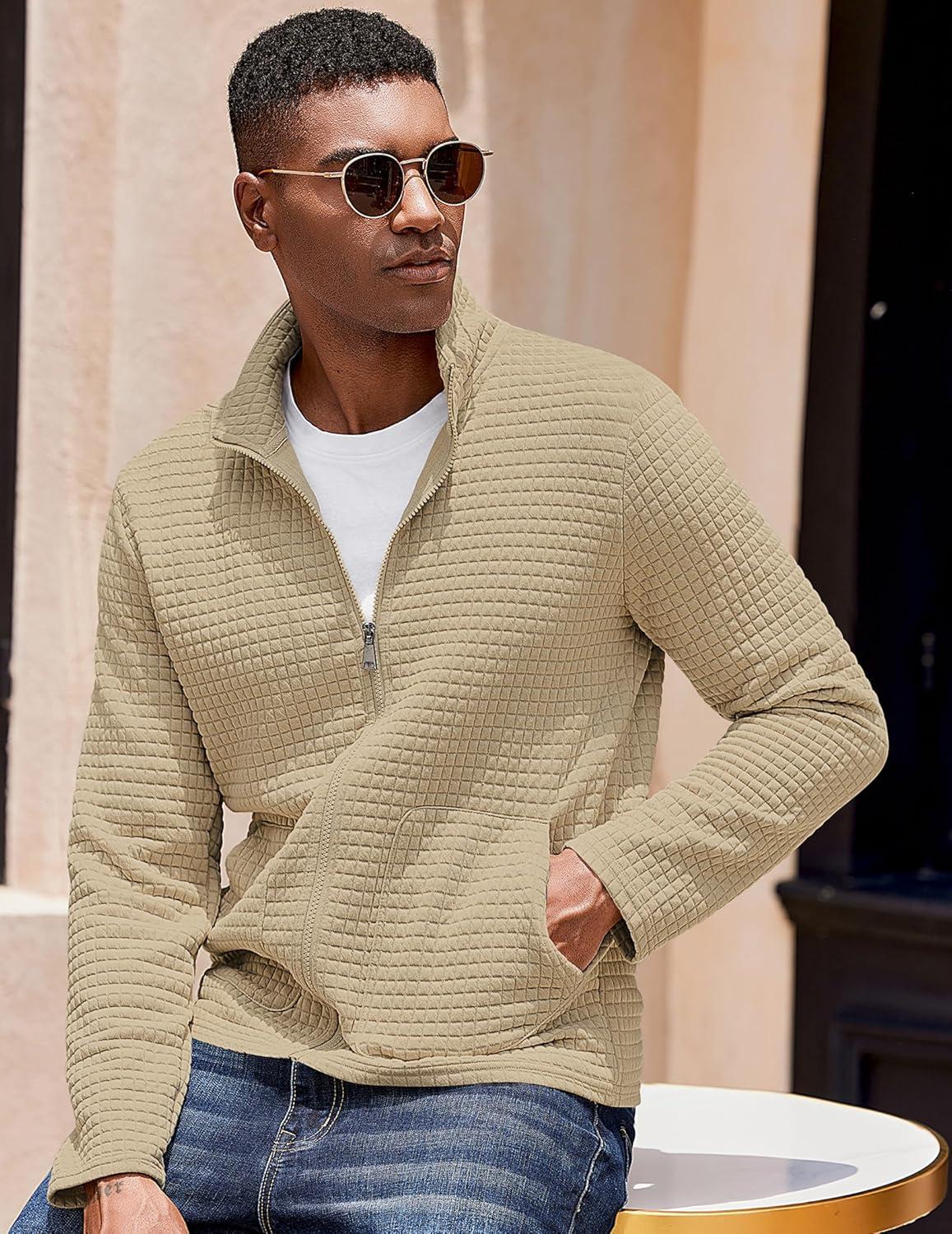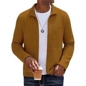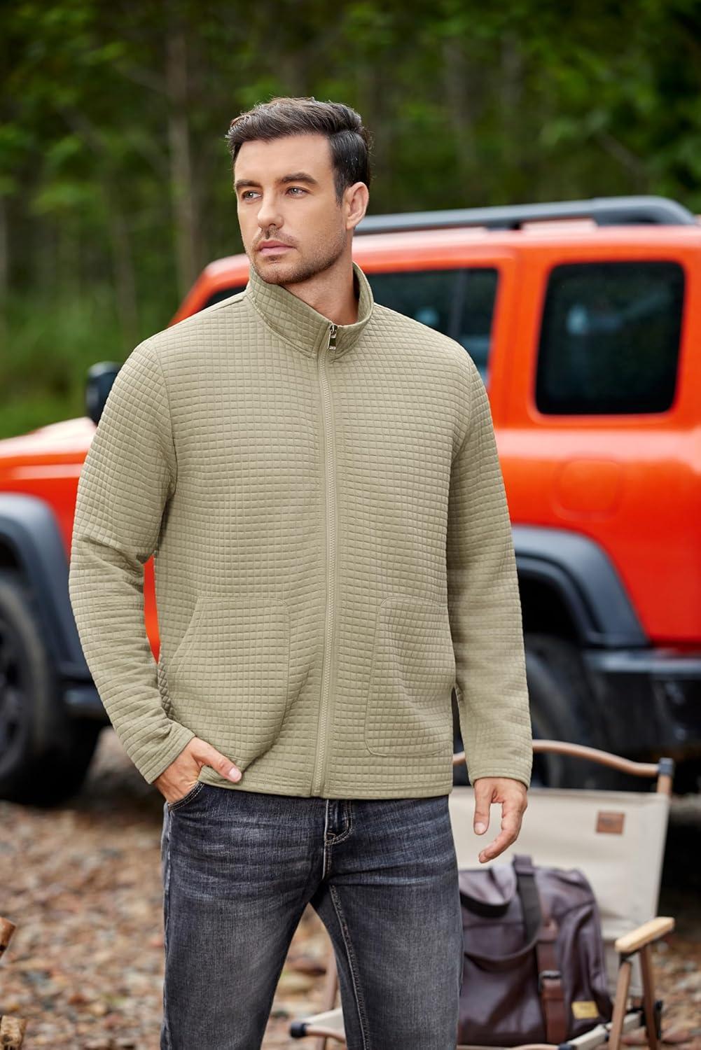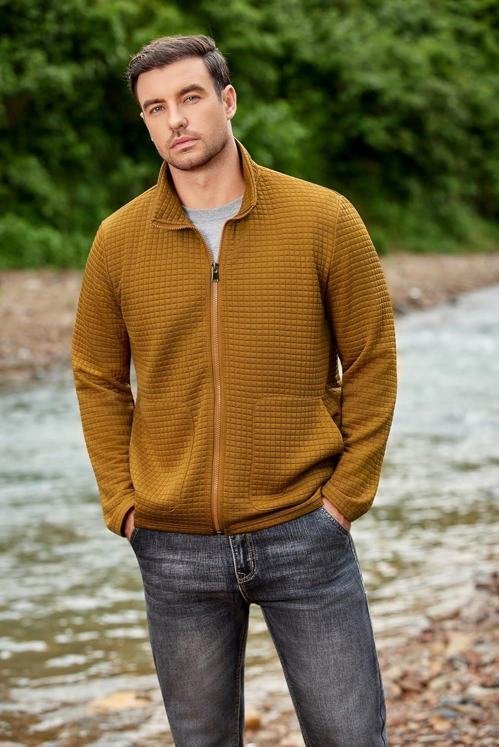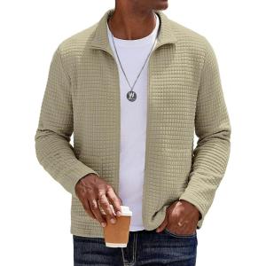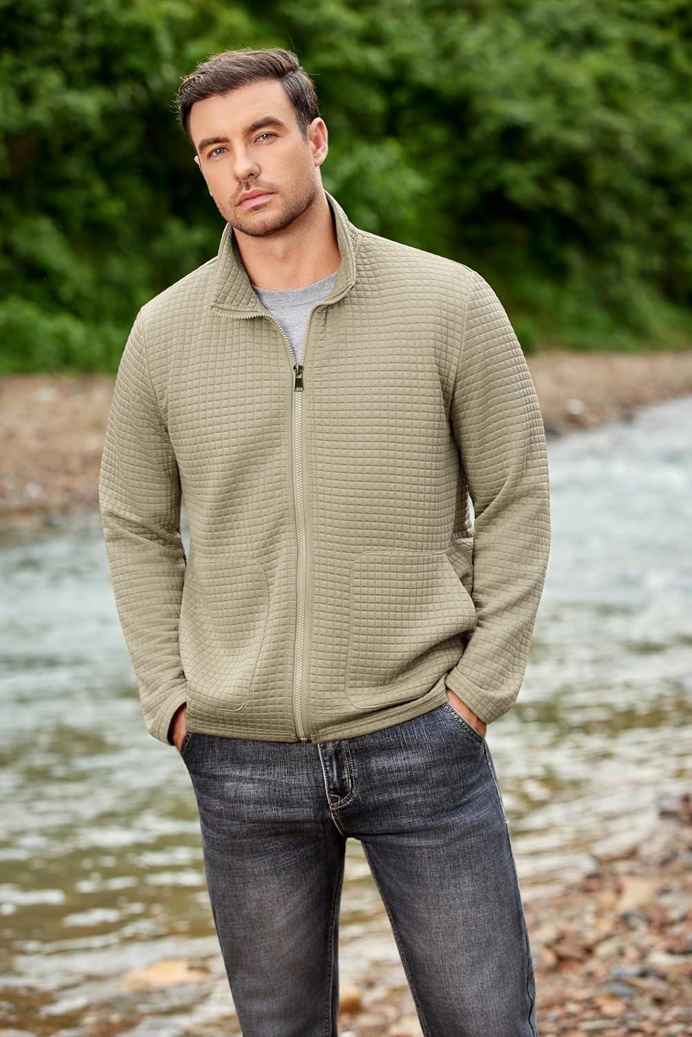 COOFANDY Men’s Lightweight Varsity Jacket Casual Bomber Jackets Waffle Zip Up Sweatshirts with Pocket(Kahki)