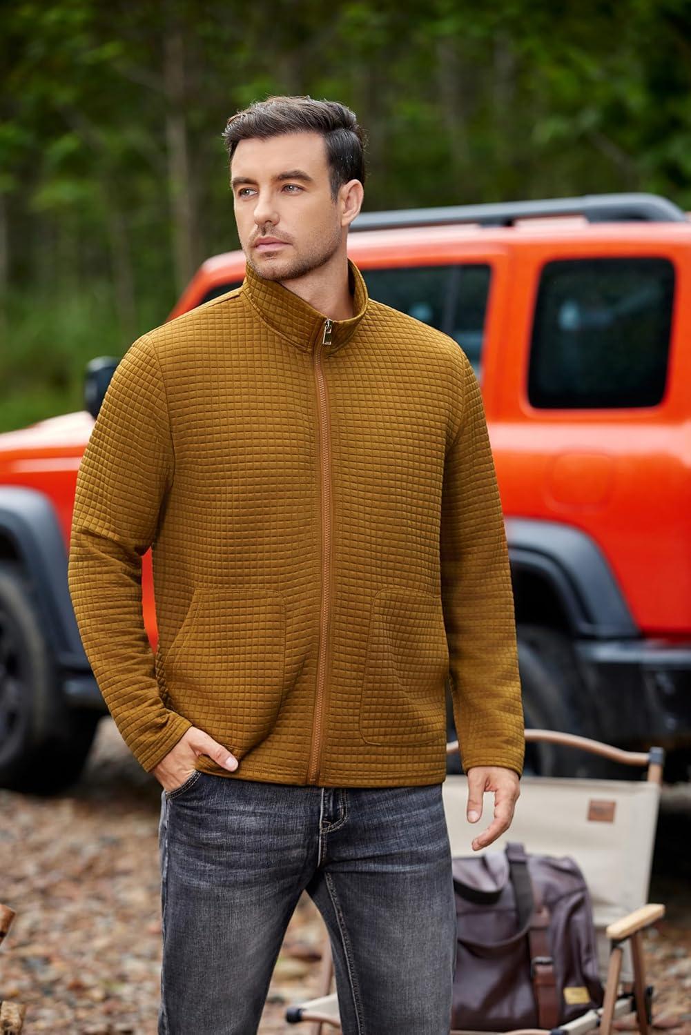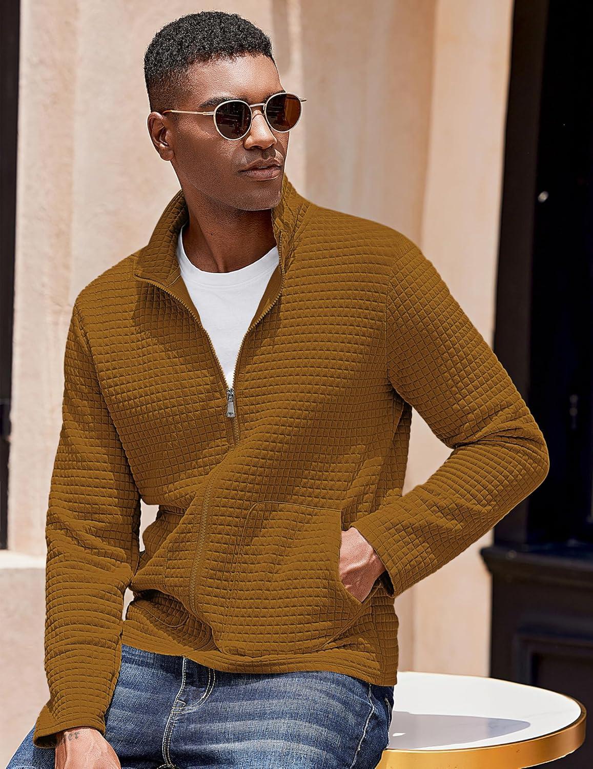 COOFANDY Men’s Lightweight Varsity Jacket Casual Bomber Jackets Waffle Zip Up Sweatshirts with Pocket(Light Brown)