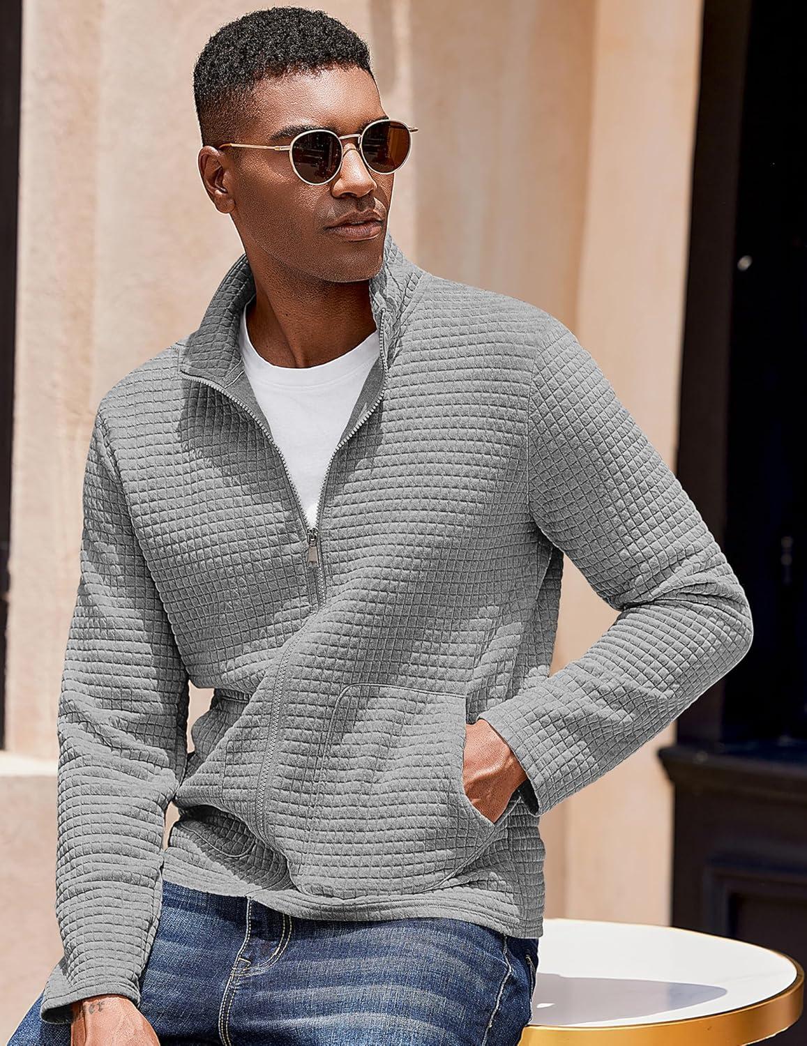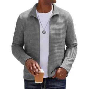 COOFANDY Men’s Lightweight Varsity Jacket Casual Bomber Jackets Waffle Zip Up Sweatshirts with Pocket(Light Grey)