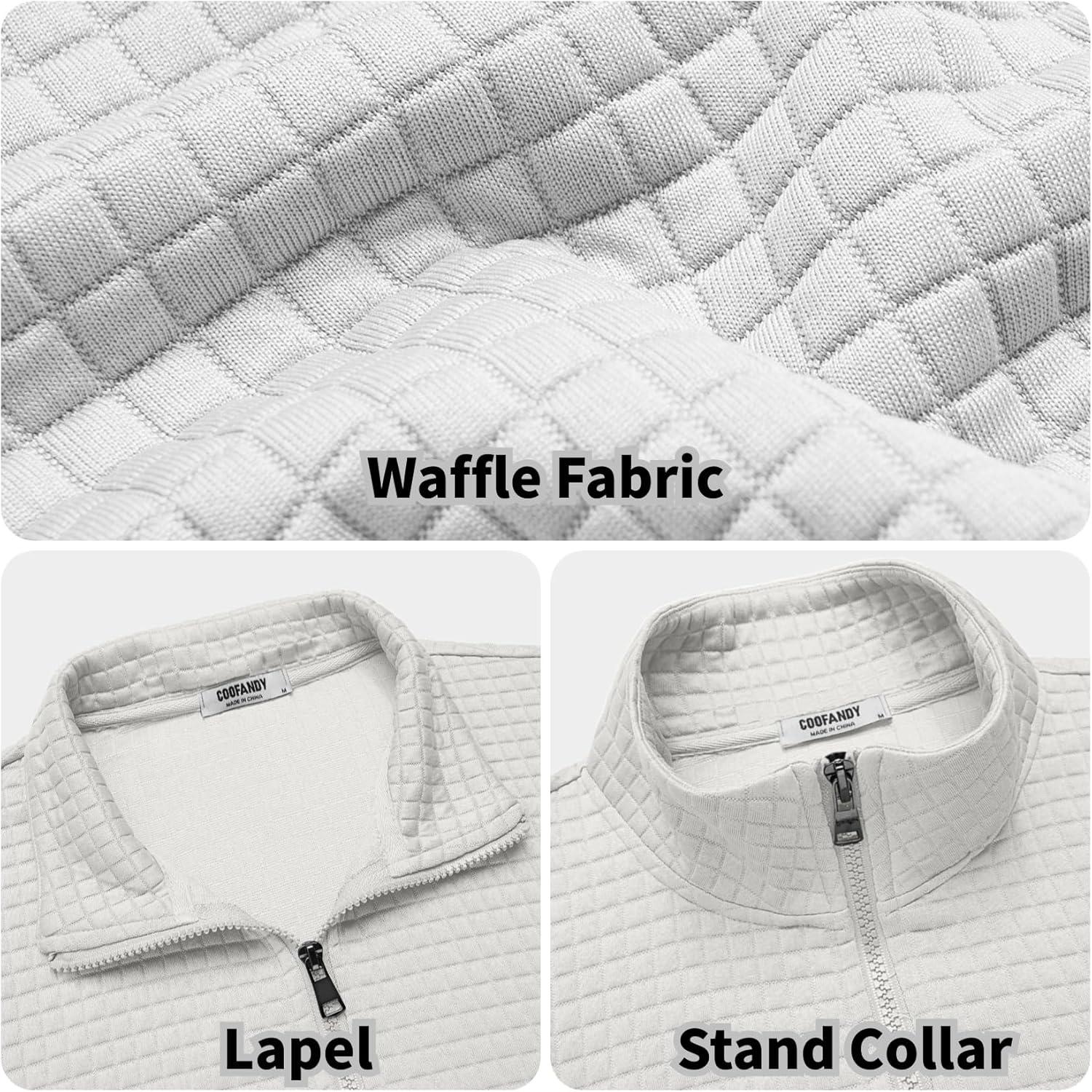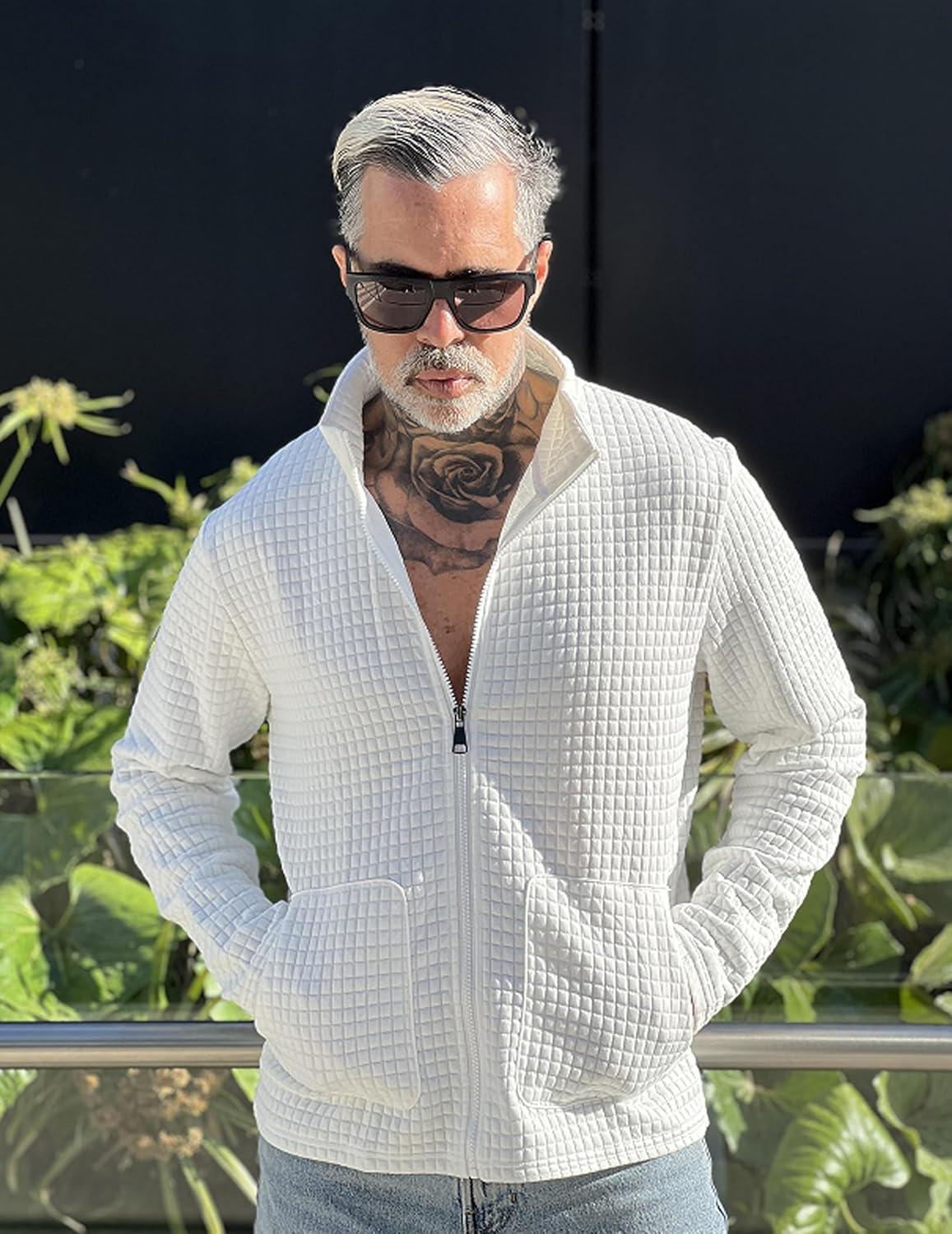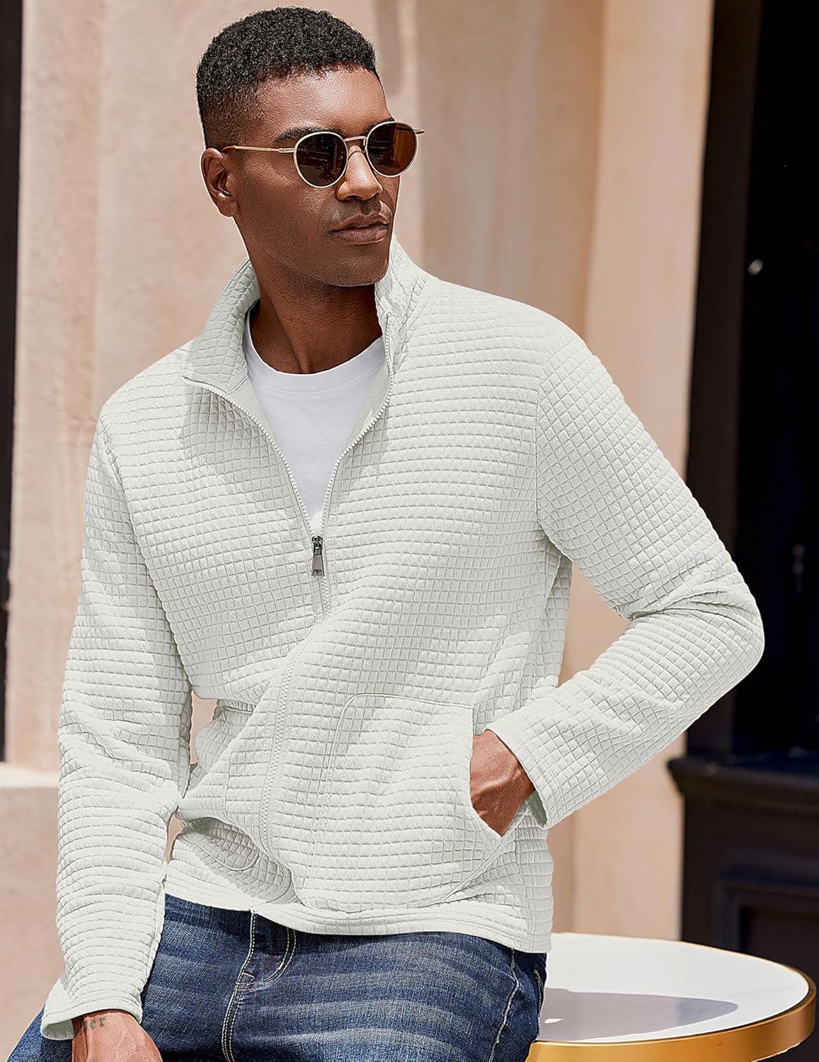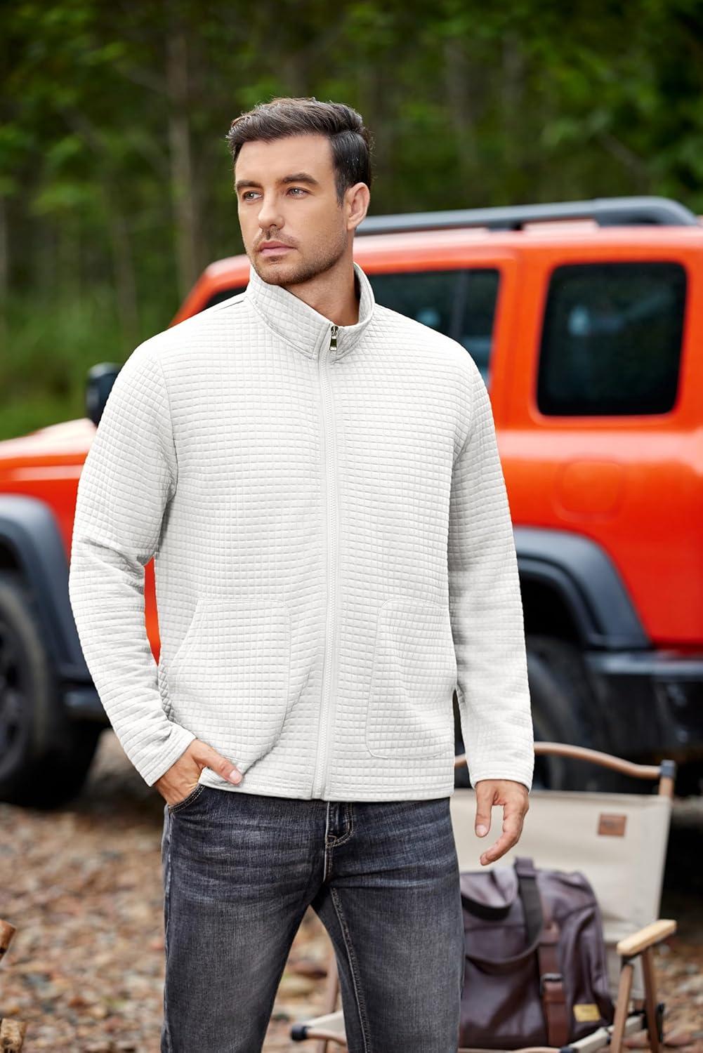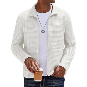 COOFANDY Men’s Lightweight Varsity Jacket Casual Bomber Jackets Waffle Zip Up Sweatshirts with Pocket(White)