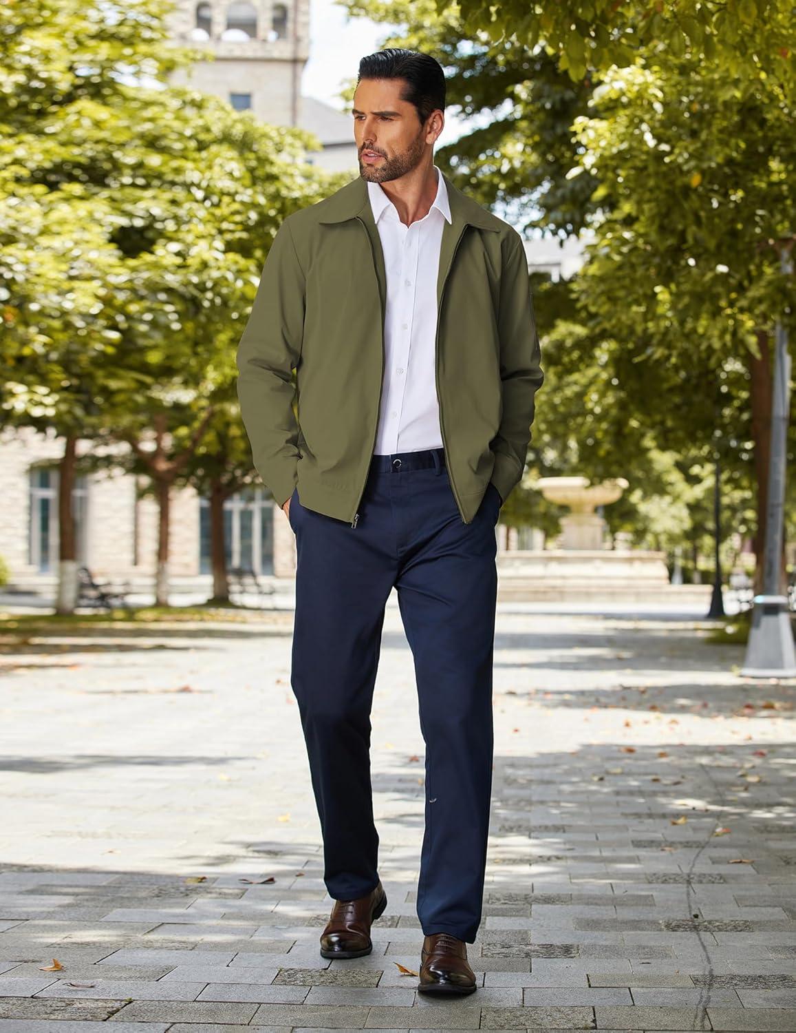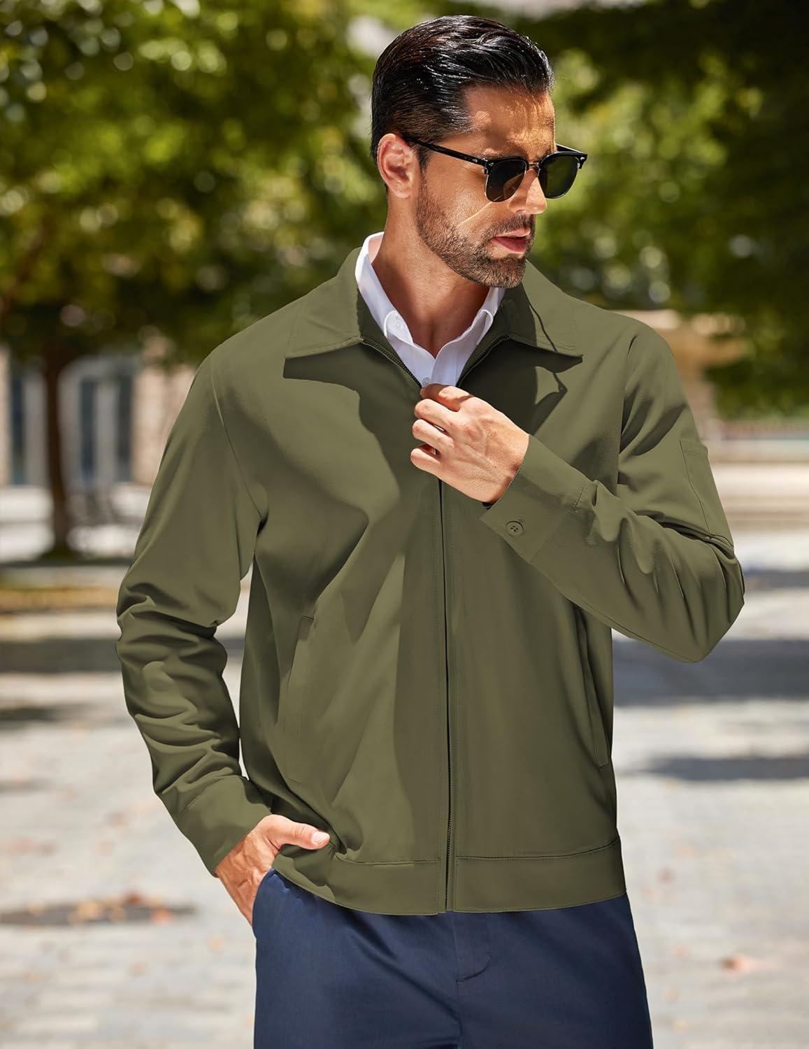 COOFANDY Men’s Lightweight Zip Up Jacket Eisenhower Work Office Jackets Casual Golf Outwear(Army Green)