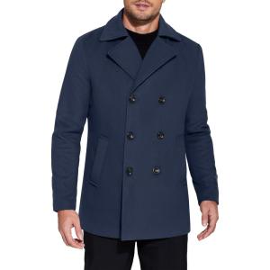 COOFANDY Men’s Double Breasted Pea Coat Winter Overcoat Short Trench Coat Notched Collar(Navy Blue)