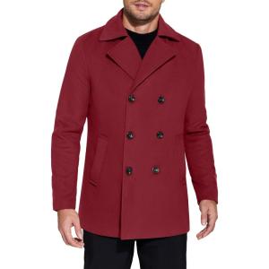 COOFANDY Men’s Double Breasted Pea Coat Winter Overcoat Short Trench Coat Notched Collar(Red)