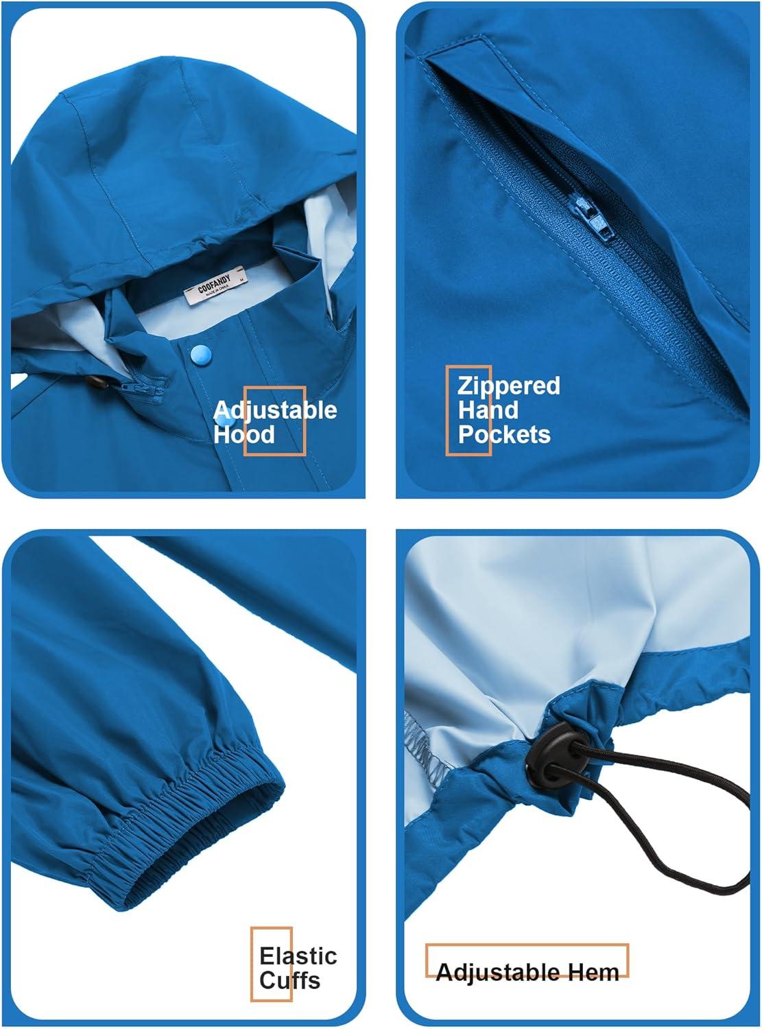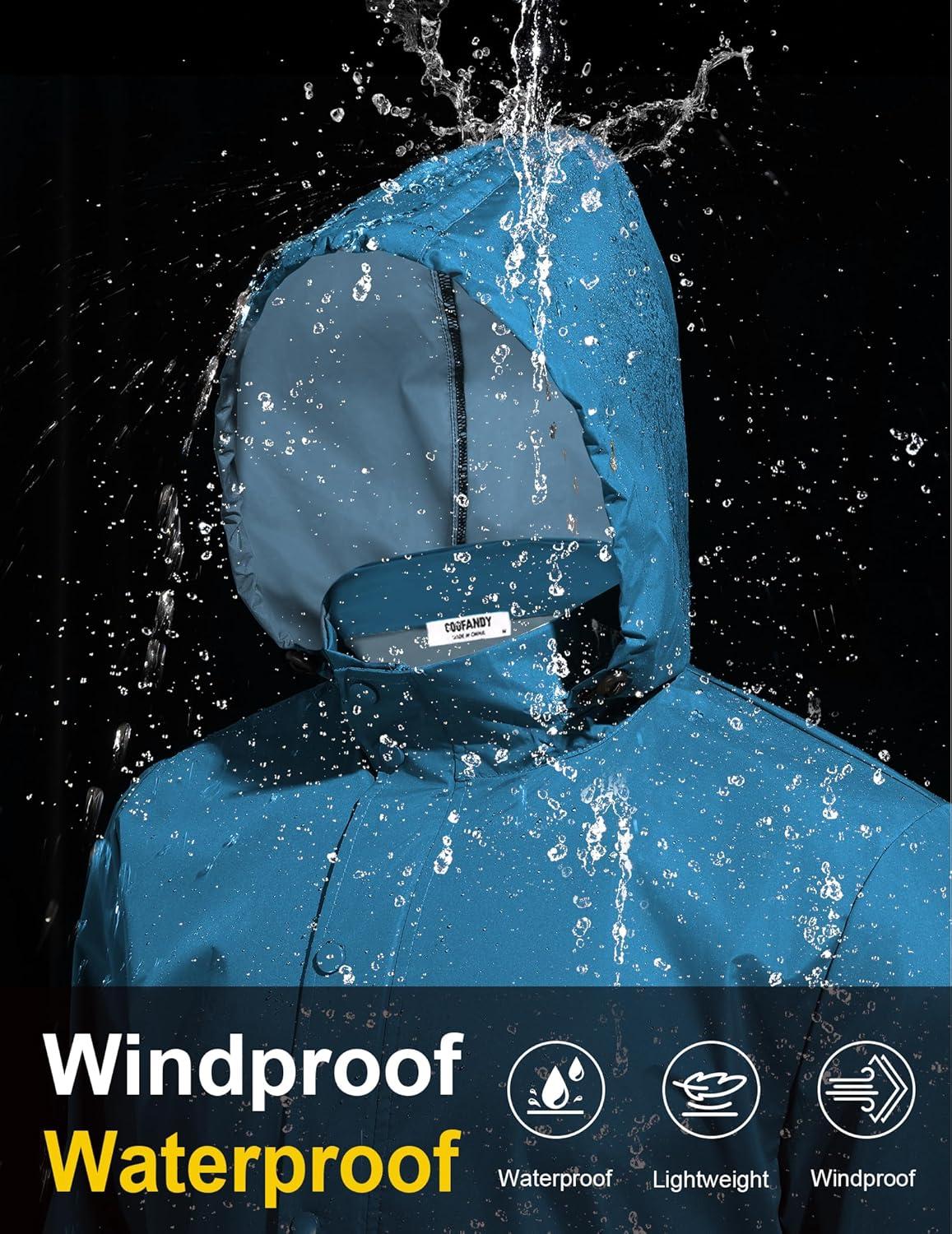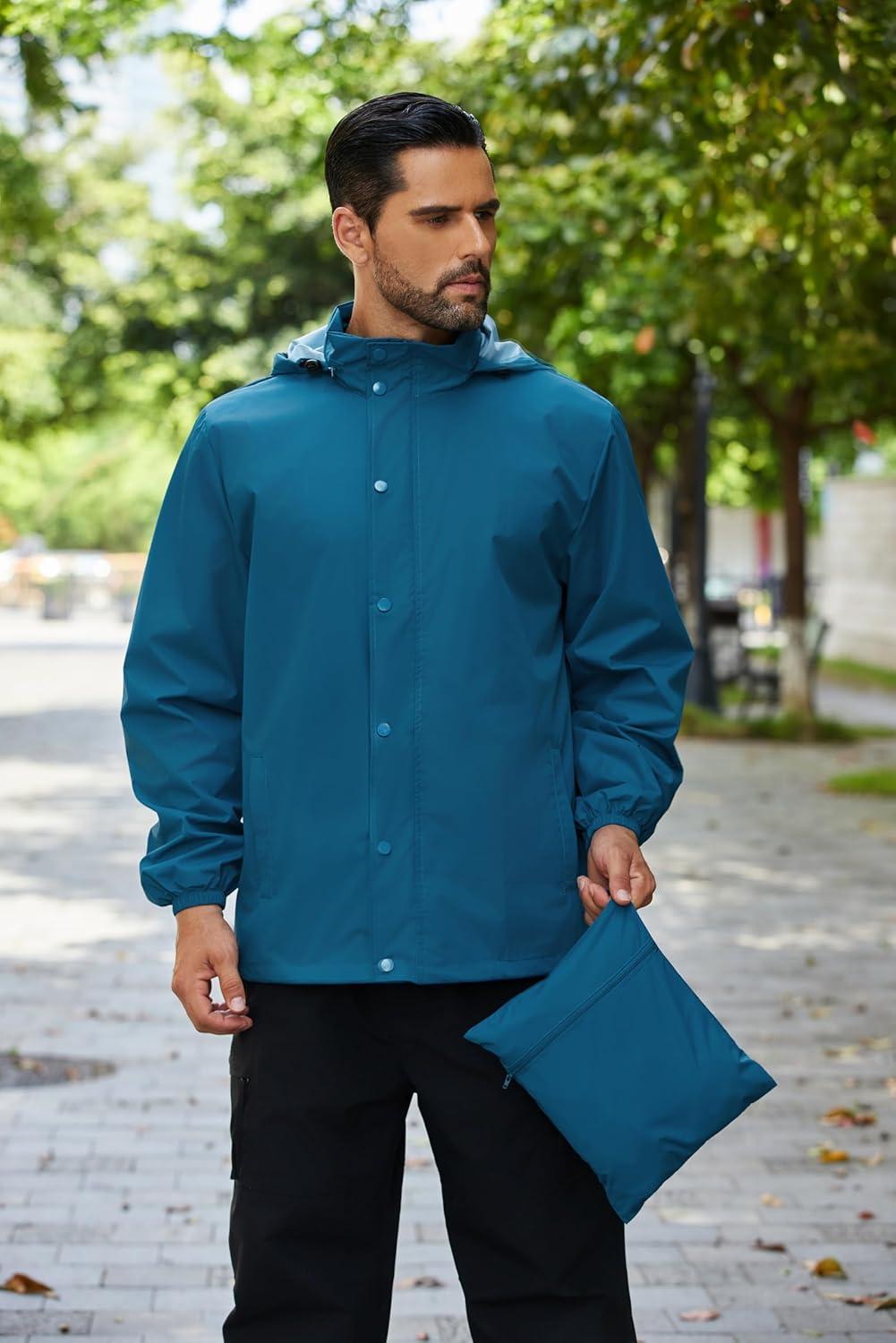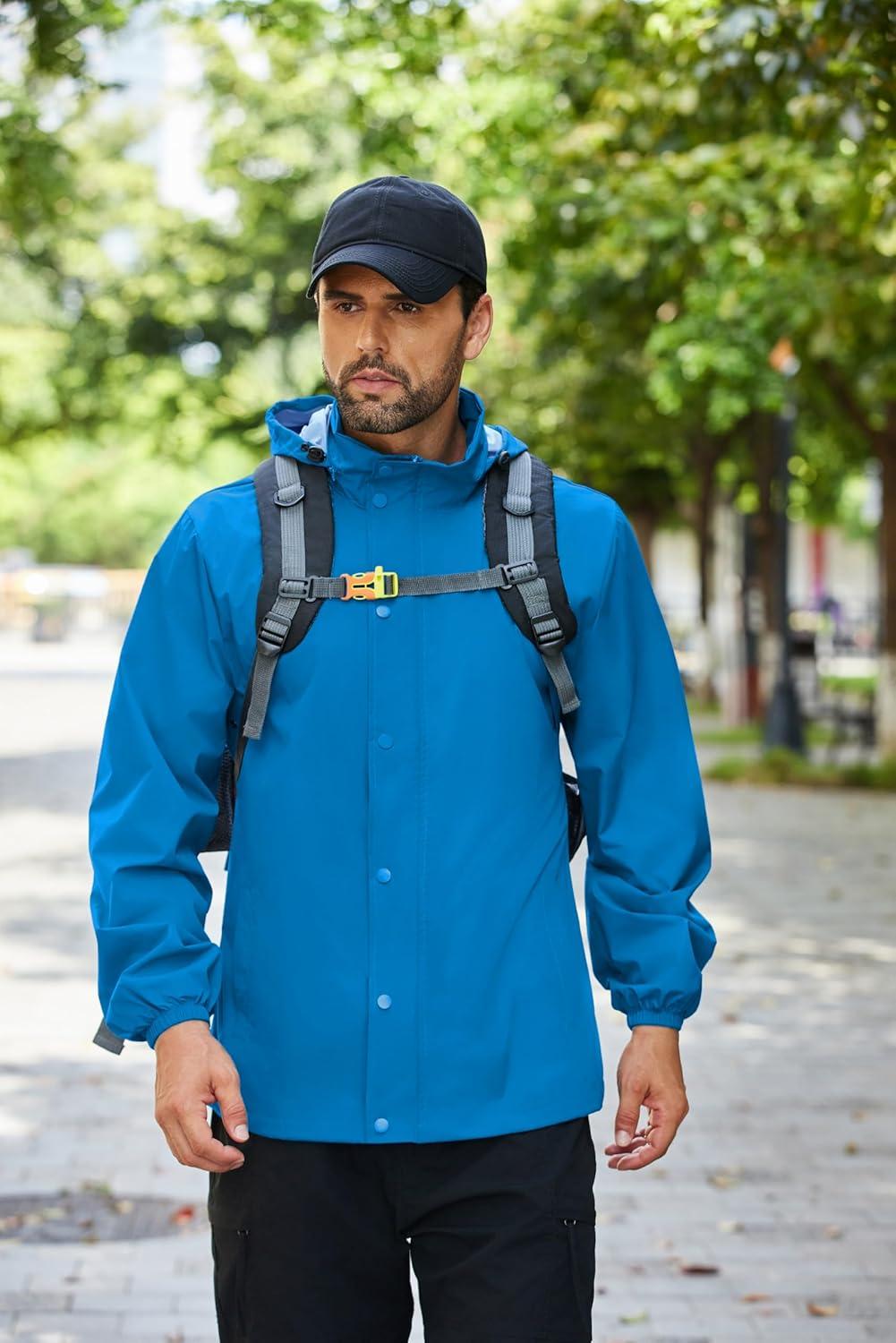 COOFANDY Men’s Rain Jacket Waterproof Packable Raincoat Lightweight Rain Shell Hood Travel Golf Hiking Cycling Zip Pockets(Bright Blue)