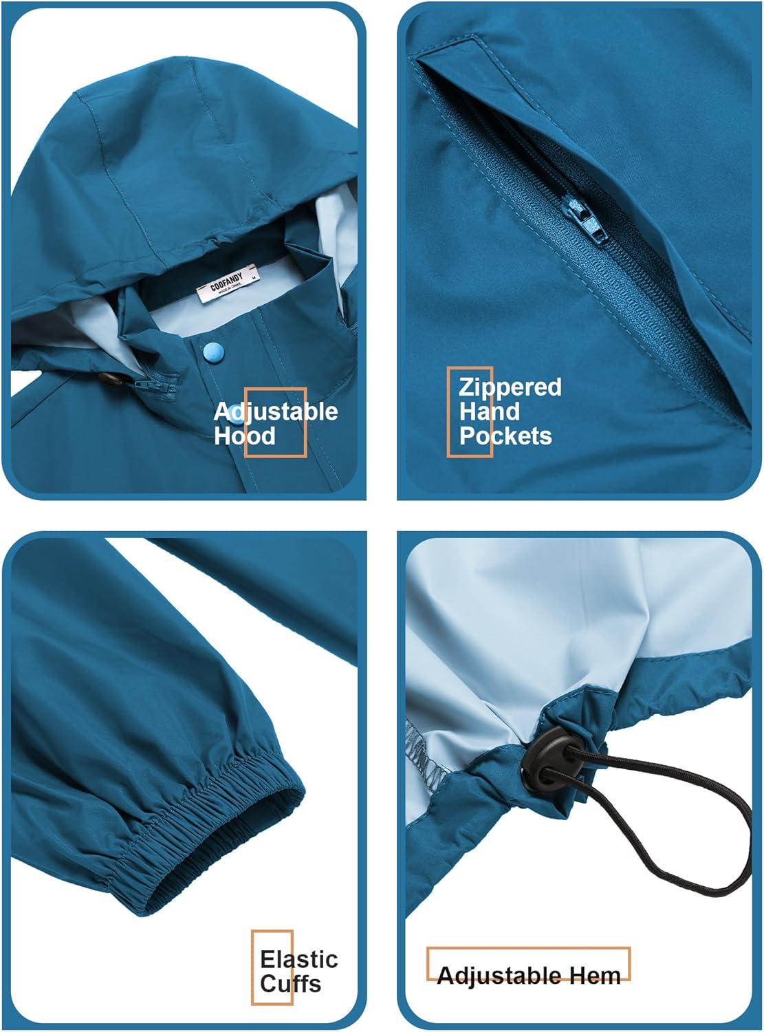 COOFANDY Men’s Rain Jacket Waterproof Packable Raincoat Lightweight Rain Shell Hood Travel Golf Hiking Cycling Zip Pockets(Blue)