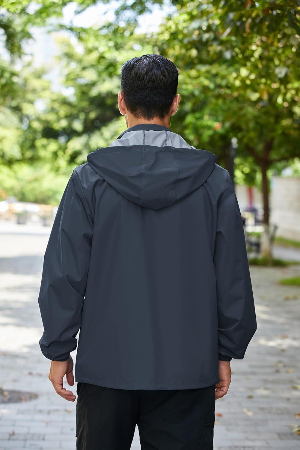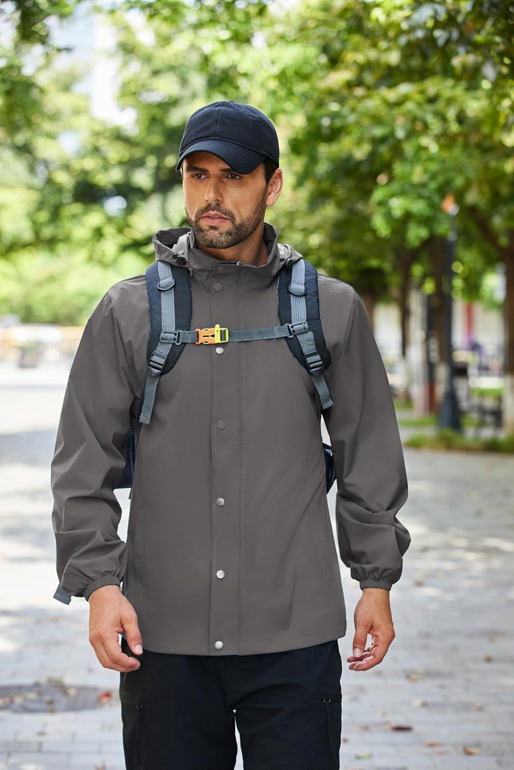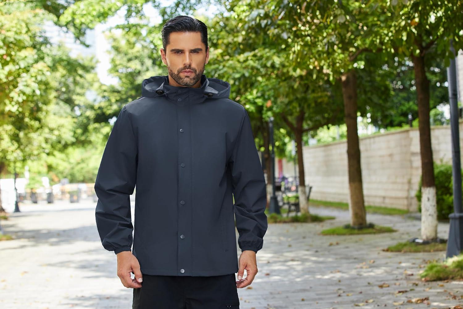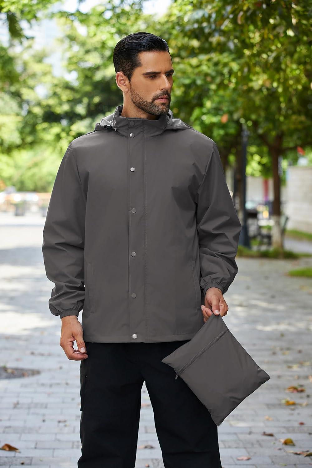 COOFANDY Men’s Rain Jacket Waterproof Packable Raincoat Lightweight Rain Shell Hood Travel Golf Hiking Cycling Zip Pockets(Dark Grey)
