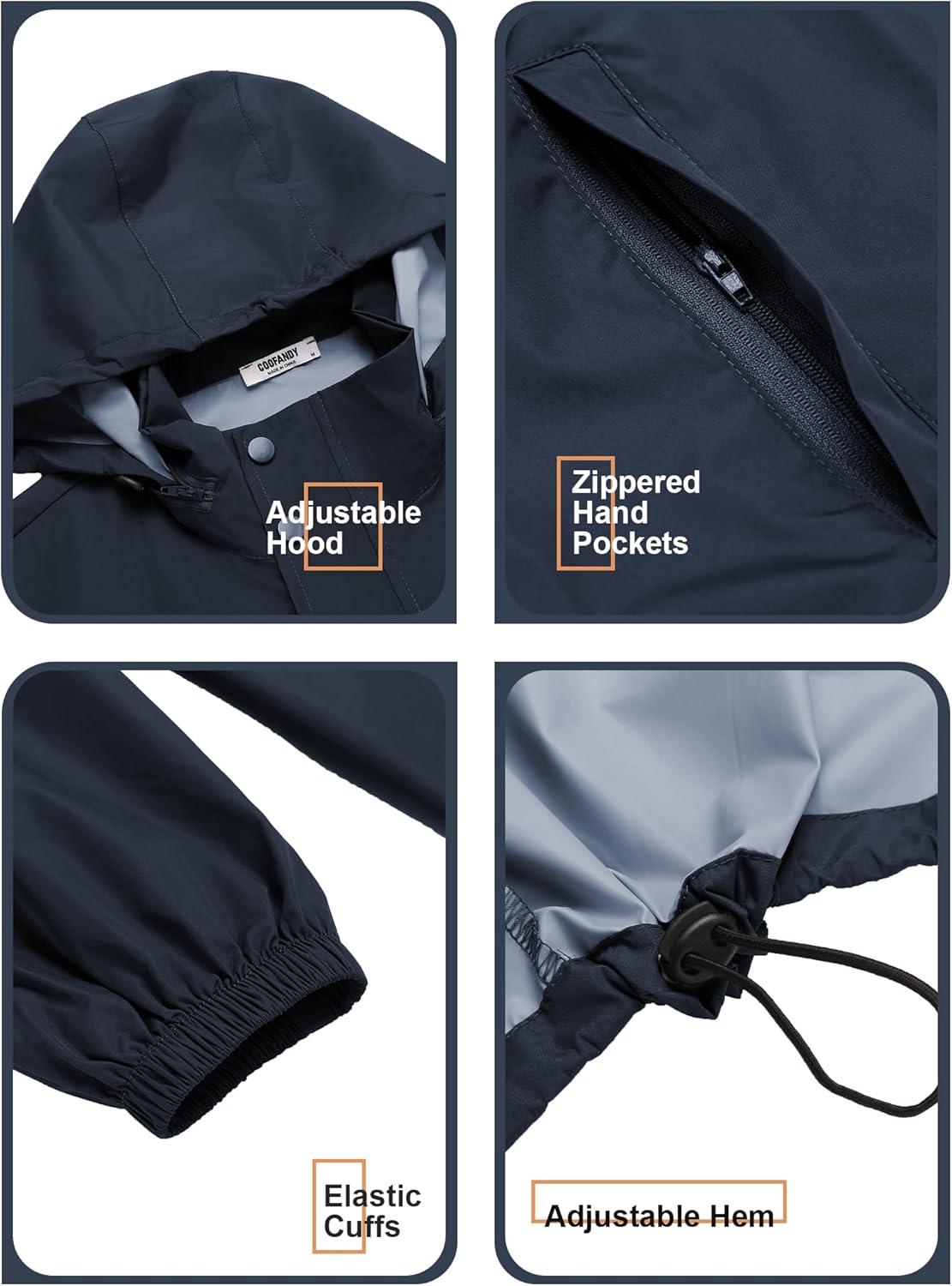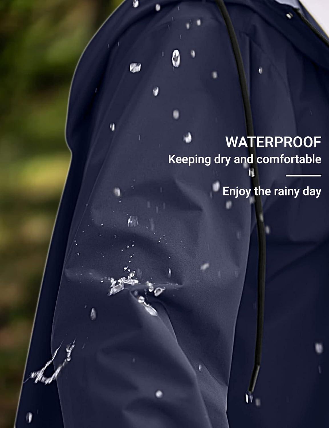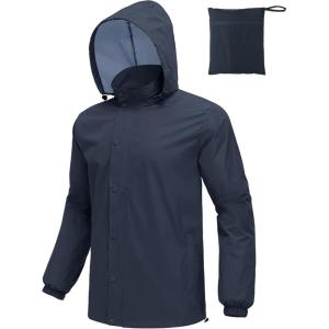 COOFANDY Men’s Rain Jacket Waterproof Packable Raincoat Lightweight Rain Shell Hood Travel Golf Hiking Cycling Zip Pockets(Dark Blue)