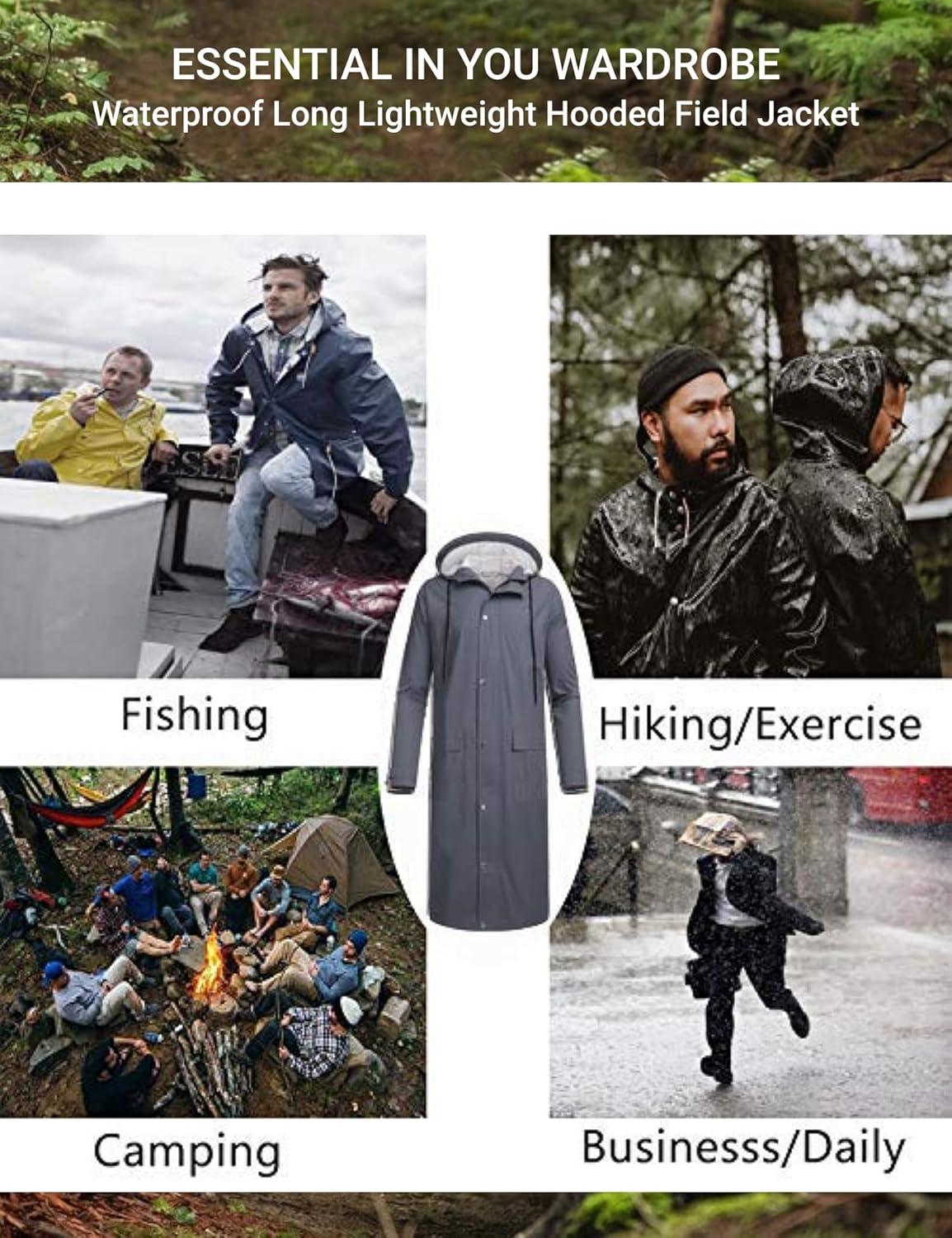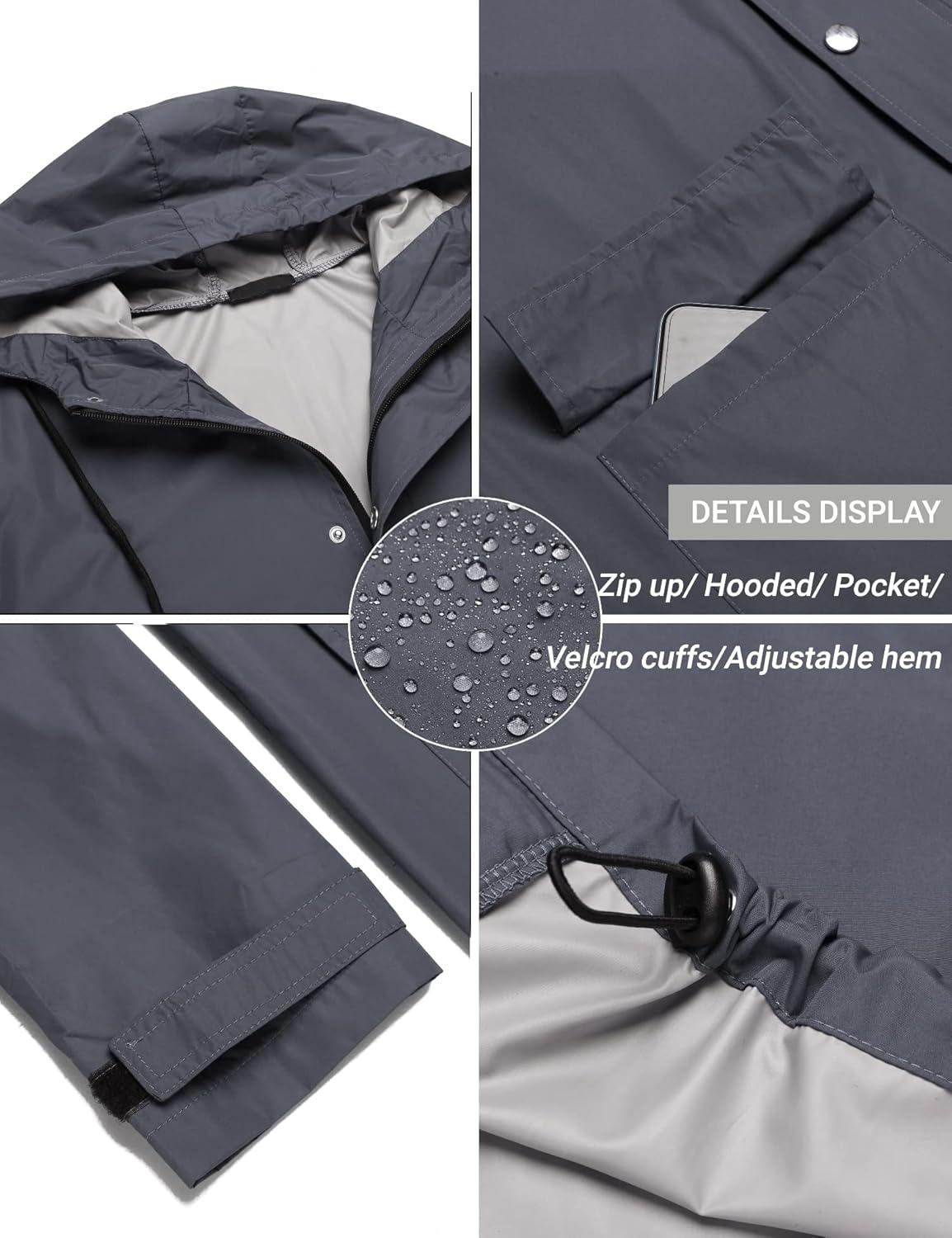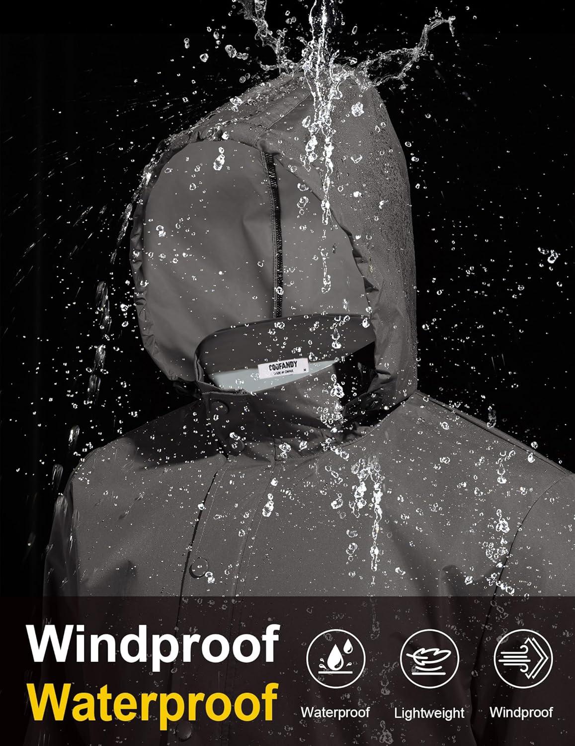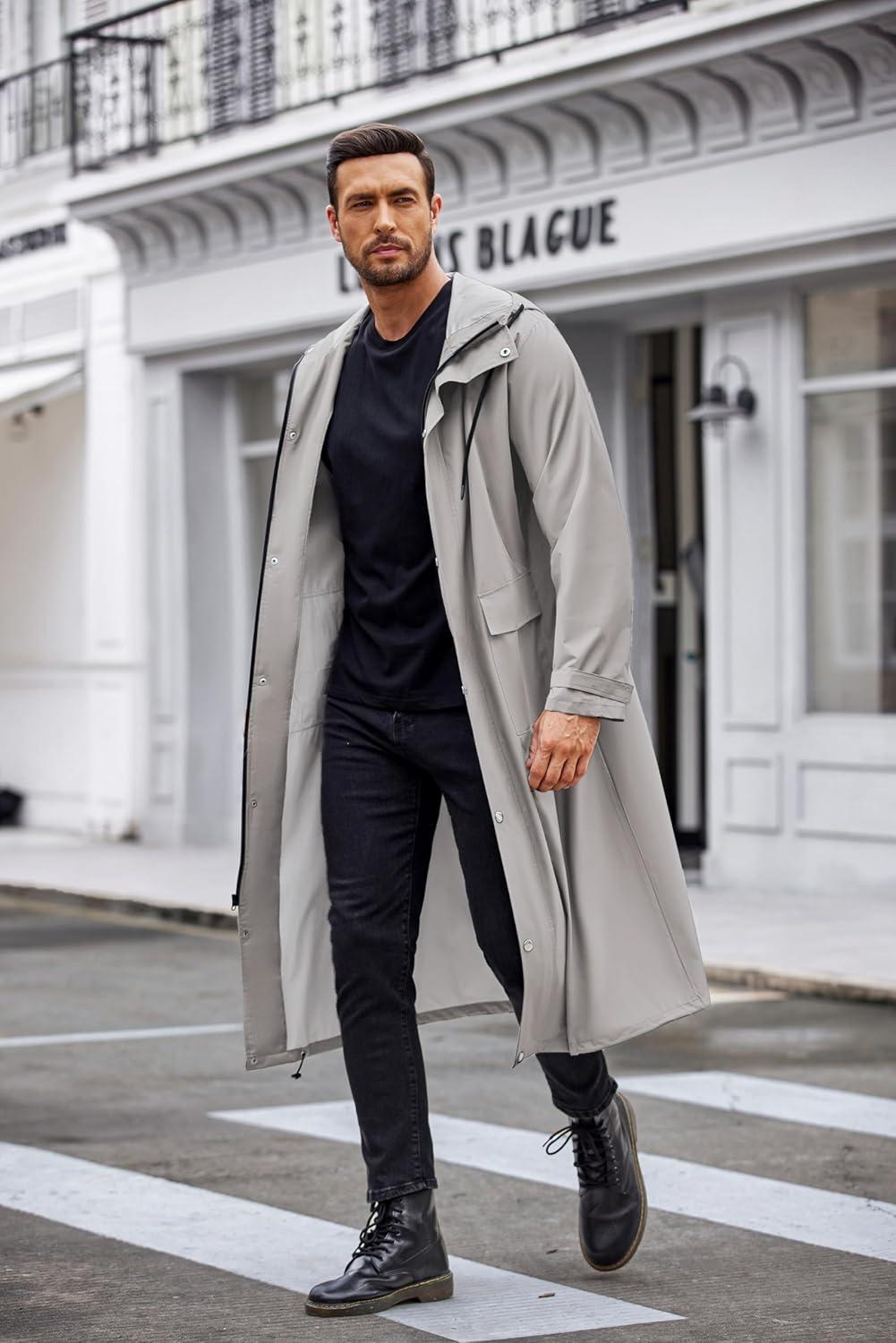 COOFANDY Men’s Rain Jacket with Hood Waterproof Lightweight Active Long Raincoat(Grey)