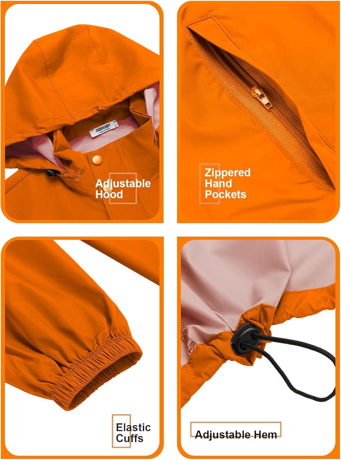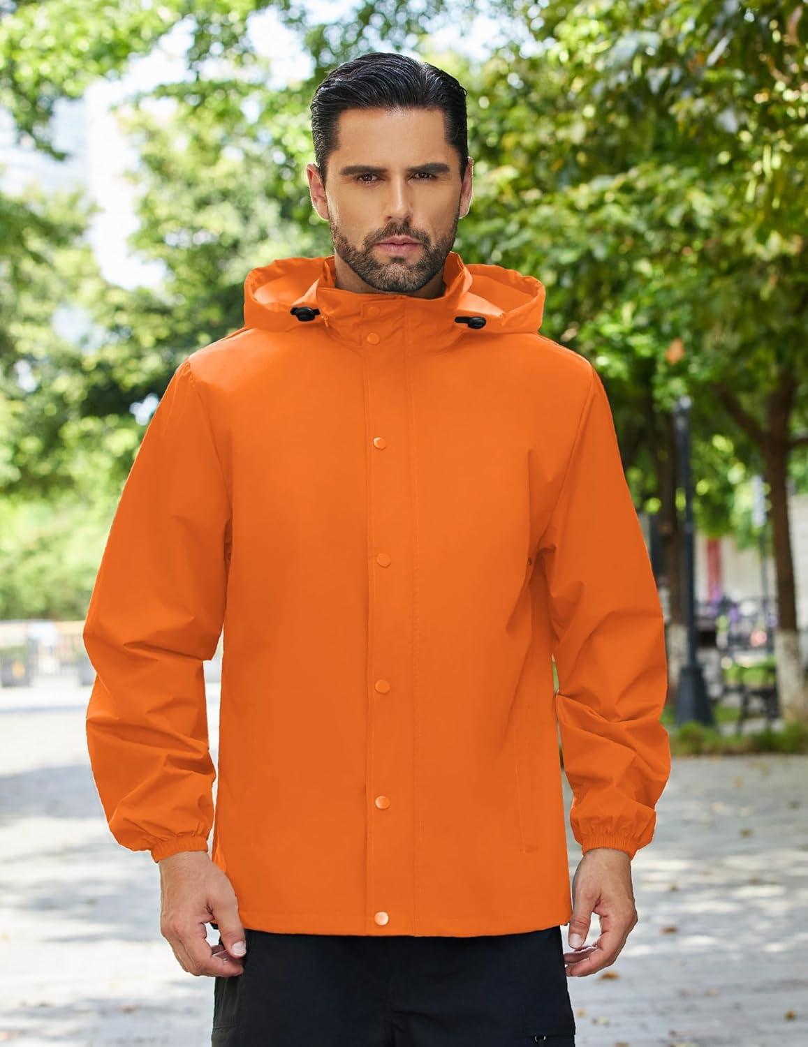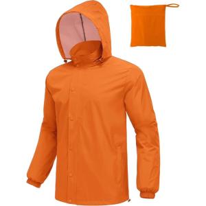 COOFANDY Men’s Rain Jacket Waterproof Packable Raincoat Lightweight Rain Shell Hood Travel Golf Hiking Cycling Zip Pockets(Orange)