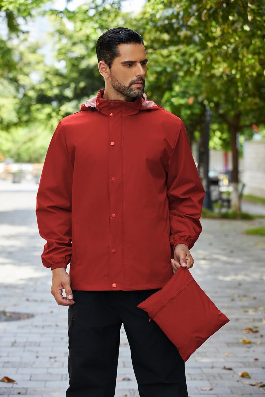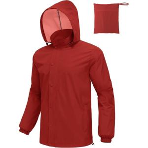COOFANDY Men’s Rain Jacket Waterproof Packable Raincoat Lightweight Rain Shell Hood Travel Golf Hiking Cycling Zip Pockets(Red)