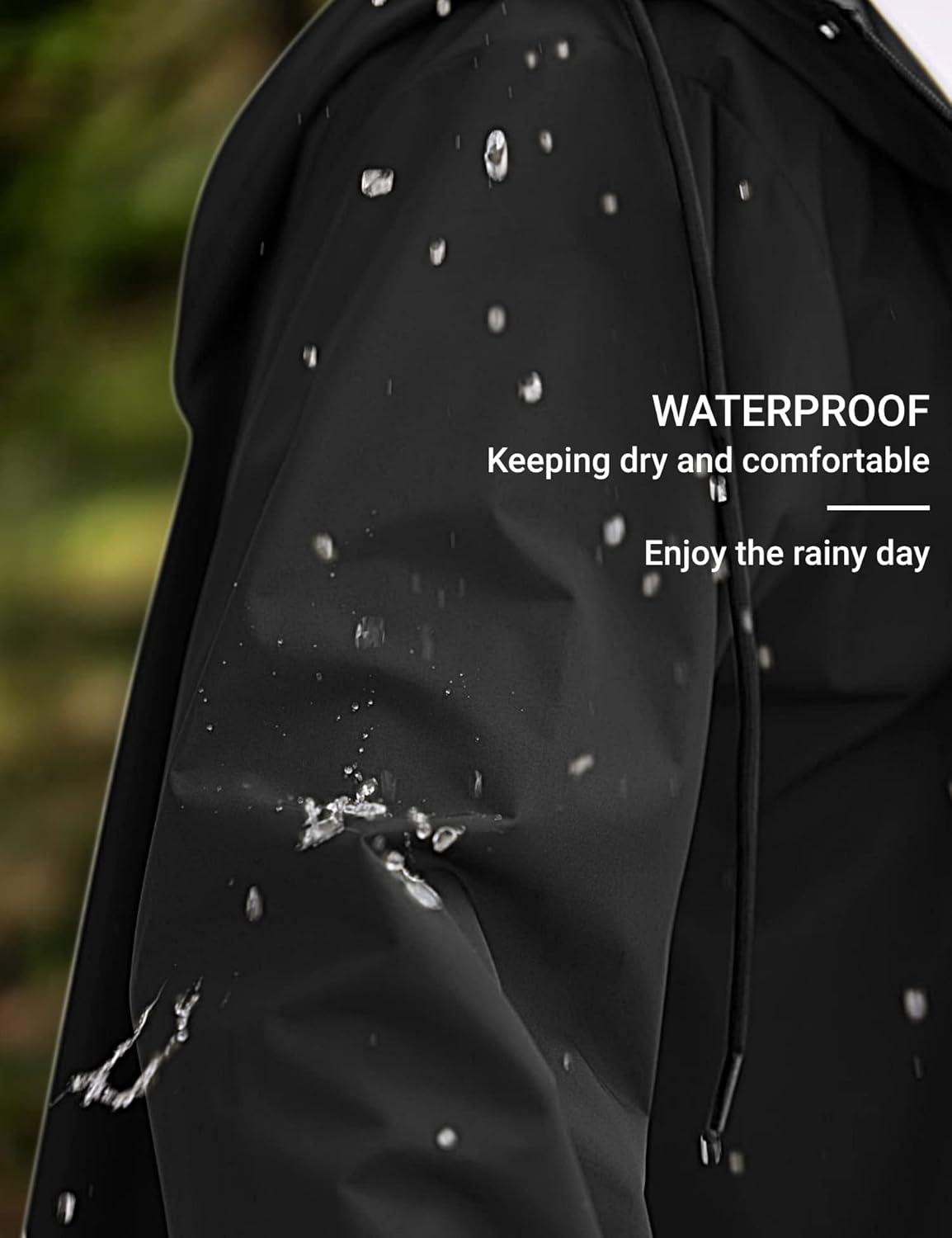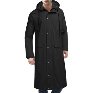 COOFANDY Men’s Rain Jacket with Hood Waterproof Lightweight Active Long Raincoat(Black)