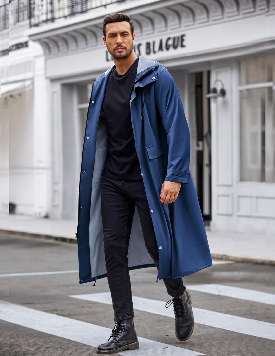 COOFANDY Men’s Rain Jacket with Hood Waterproof Lightweight Active Long Raincoat(Blue)