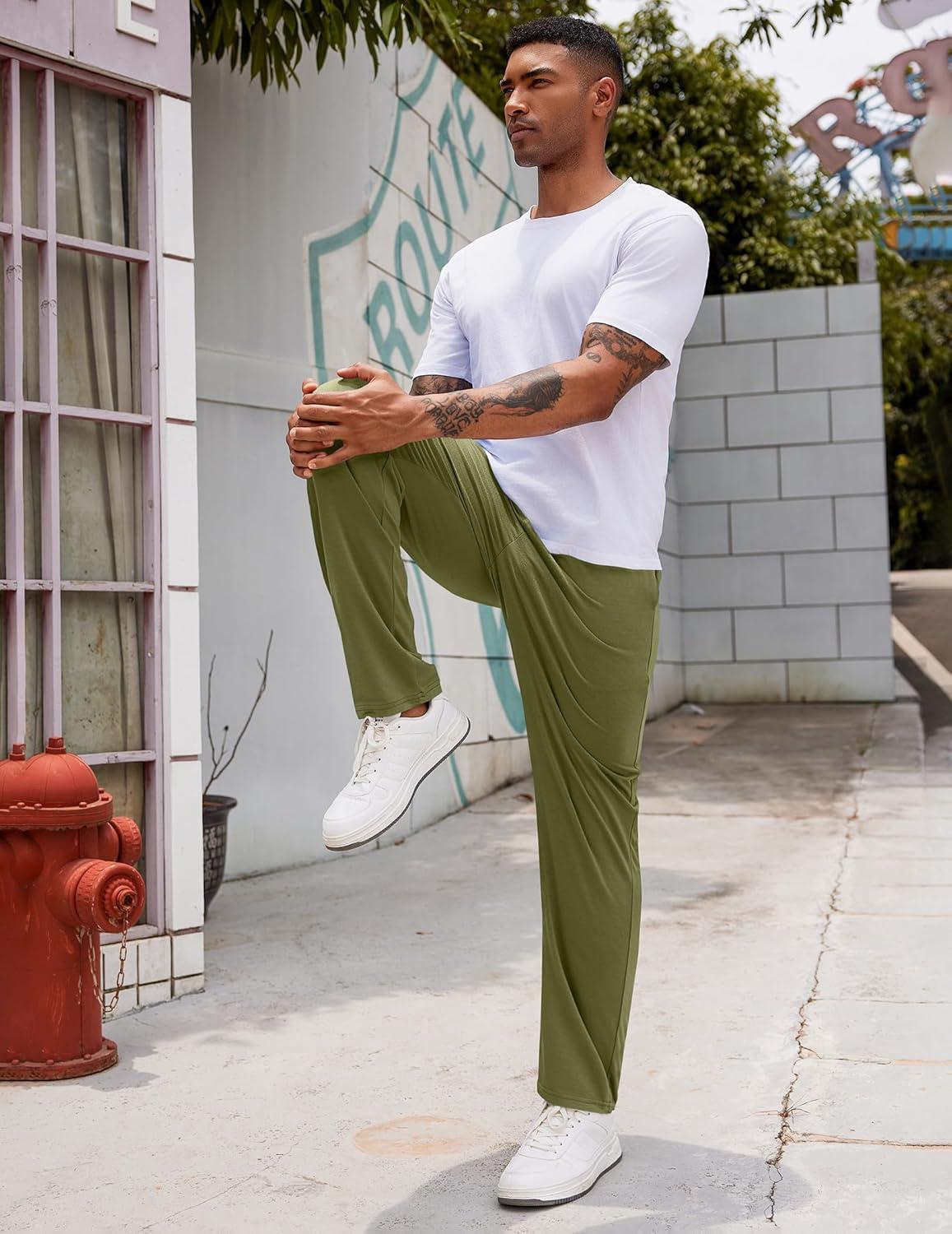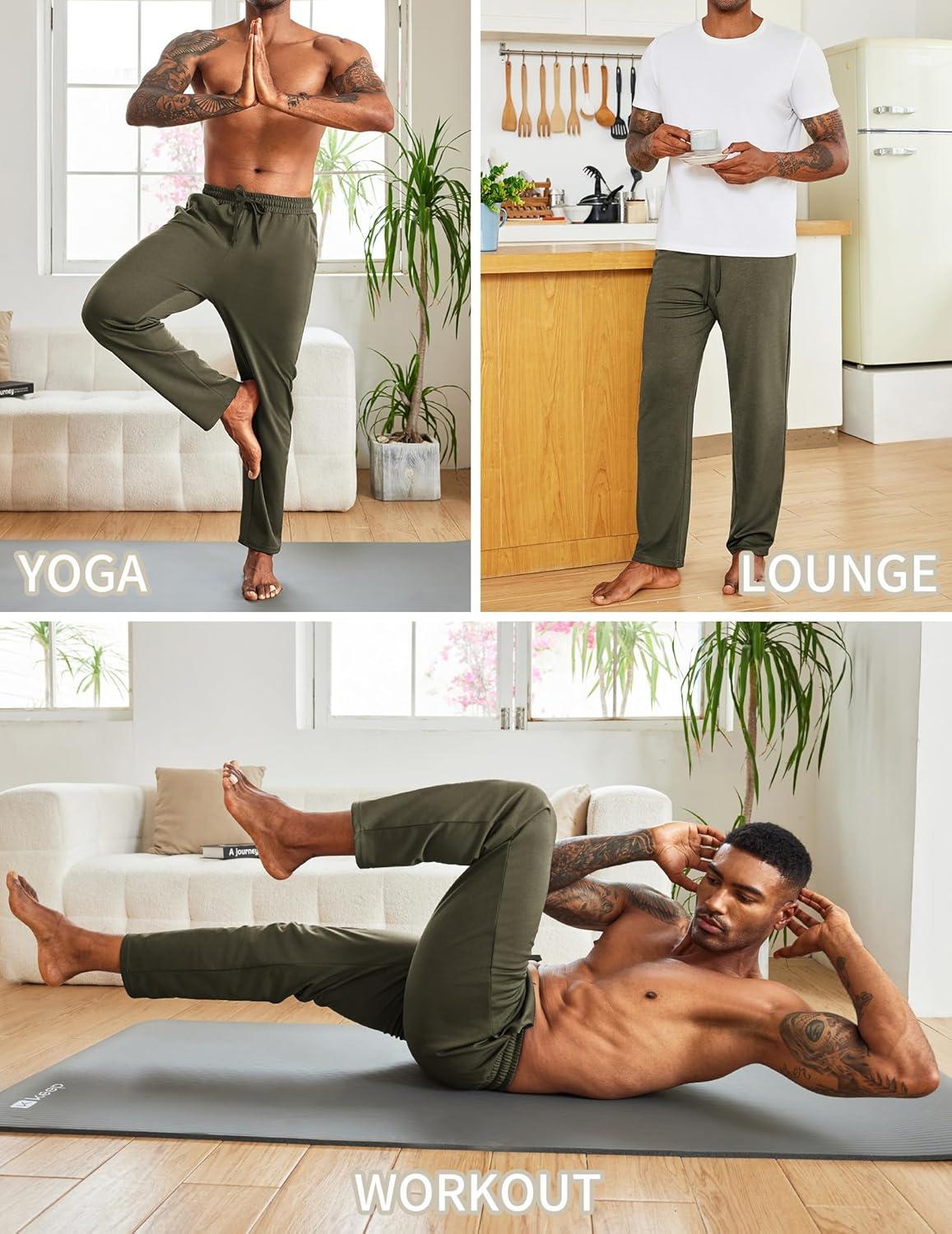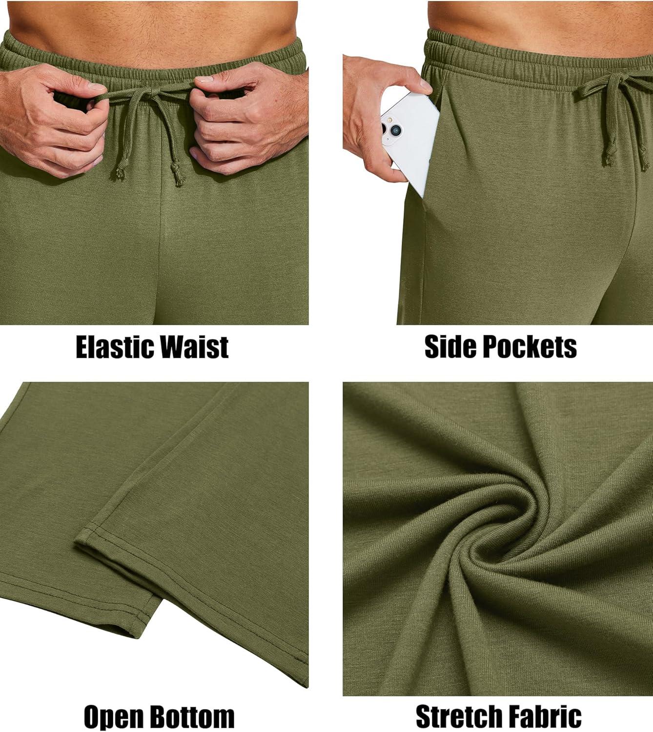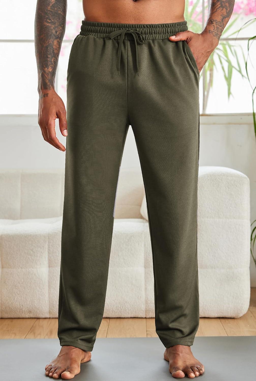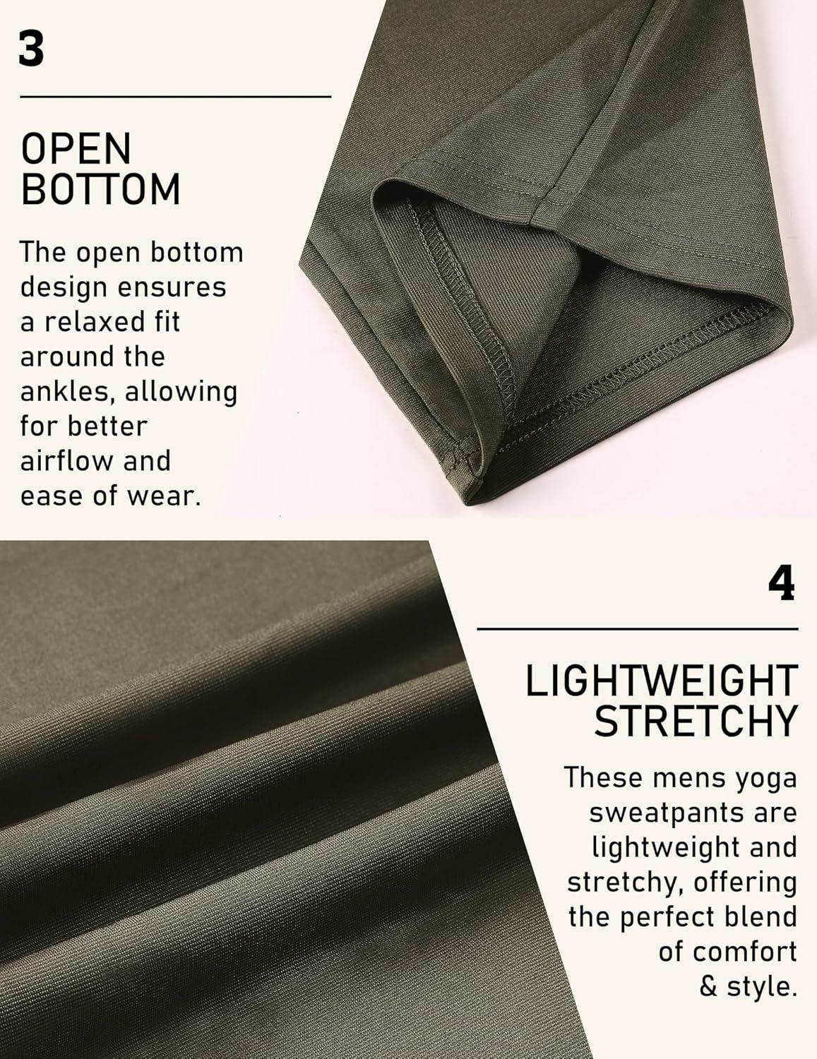 COOFANDY Men’s Yoga Sweatpants Lightweight Open Bottom Lounge Pants Casual Drawstring Sweat Pants with Pockets(Army Green)