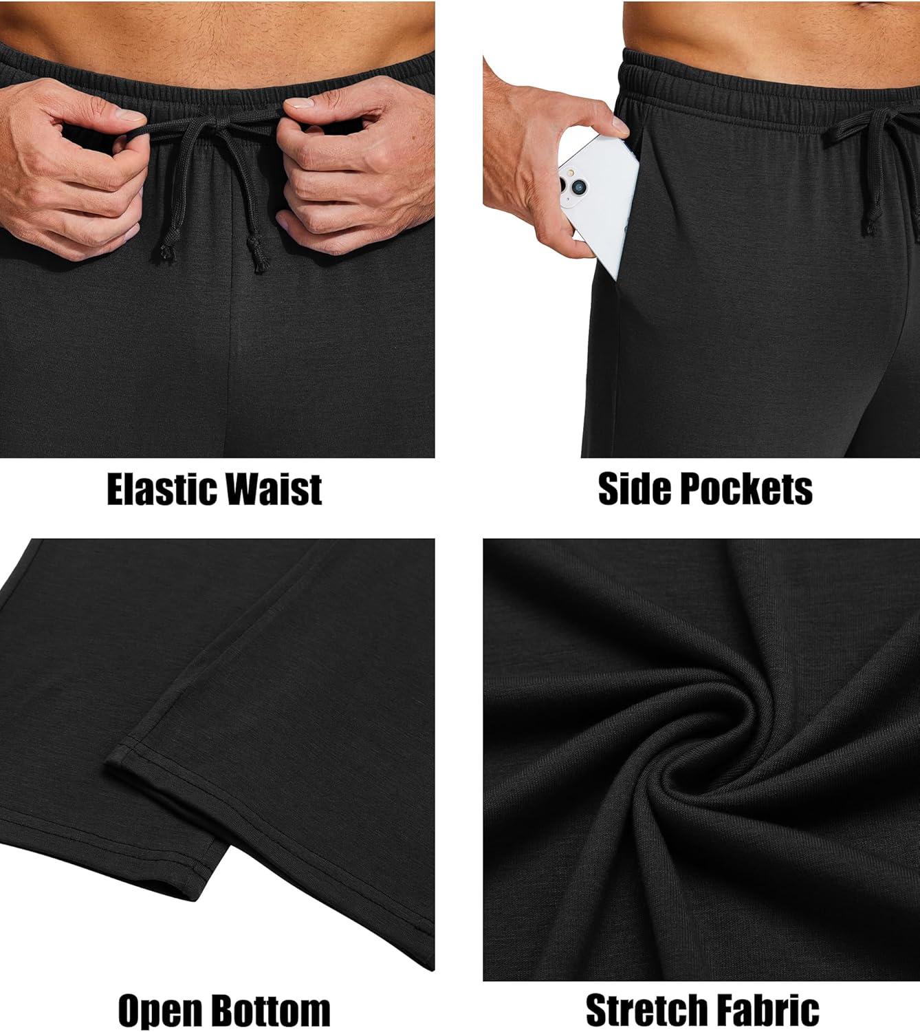 COOFANDY Men’s Yoga Sweatpants Lightweight Open Bottom Lounge Pants Casual Drawstring Sweat Pants with Pockets(Black)
