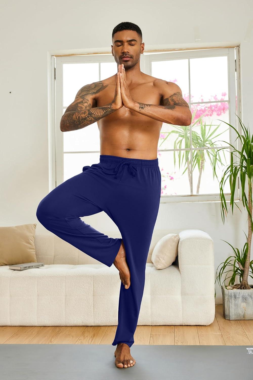 COOFANDY Men’s Yoga Pants Casual Elastic Waist Drawstring Jogger Sweatpants Open Bottom Lounge Pants(Navy Blue)