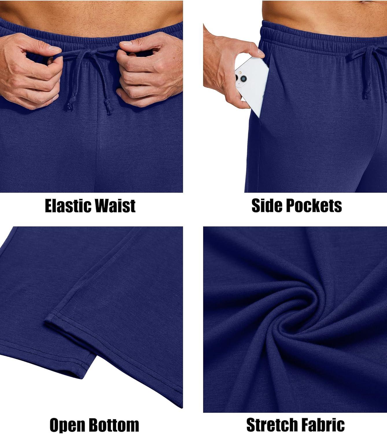COOFANDY Men’s Yoga Sweatpants Lightweight Open Bottom Lounge Pants Casual Drawstring Sweat Pants with Pockets(Blue)