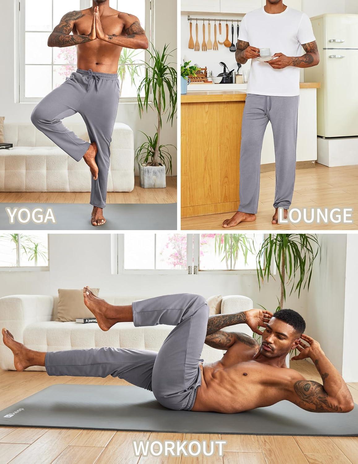 COOFANDY Men’s Yoga Pants Casual Elastic Waist Drawstring Jogger Sweatpants Open Bottom Lounge Pants(Grey)