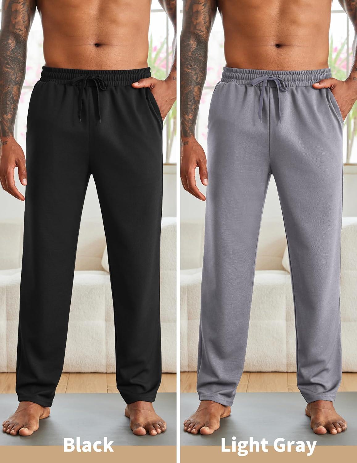 COOFANDY Men’s Yoga Sweatpants Lightweight Open Bottom Lounge Pants Casual Drawstring Sweat Pants with Pockets(2 Pack: Black/Light Grey)