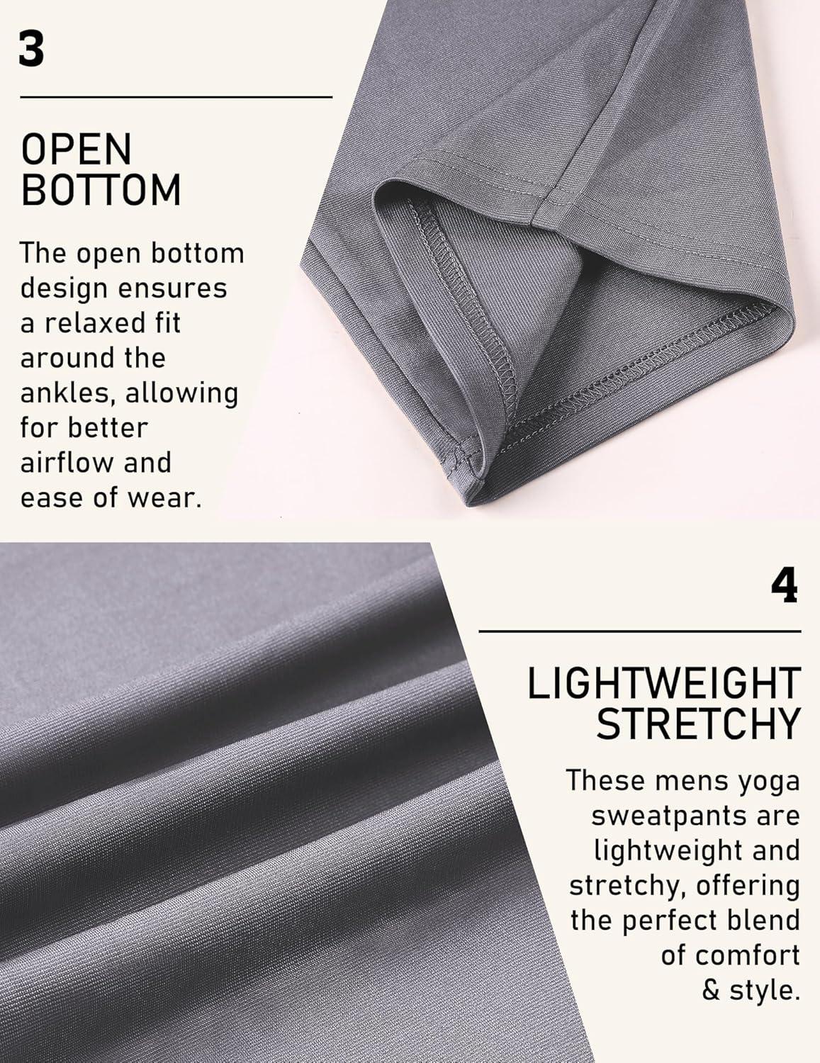 COOFANDY Men’s Yoga Sweatpants Open Bottom Lightweight Sweat Pants Drawstring Athletic Lounge Pants with Pockets(Black & Light Gray)