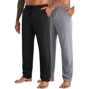 COOFANDY Men’s Yoga Sweatpants Lightweight Open Bottom Lounge Pants Casual Drawstring Sweat Pants with Pockets(2 Pack: Black/Grey)