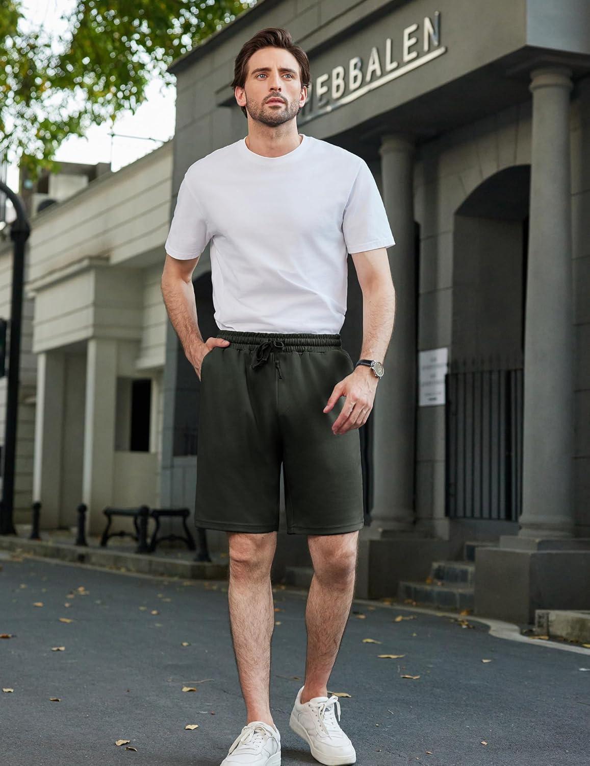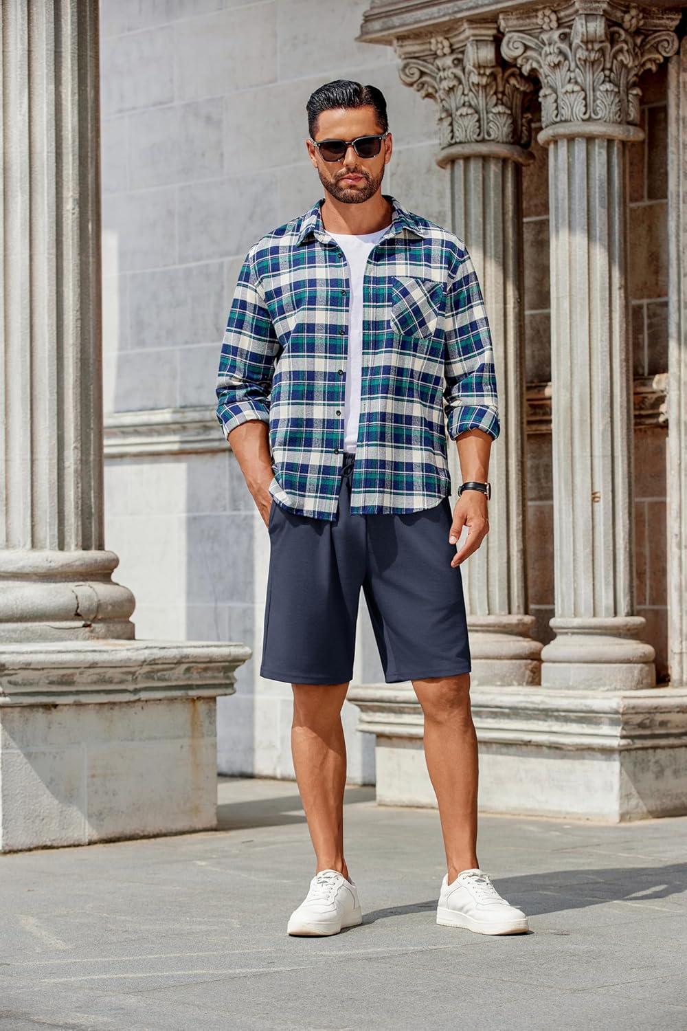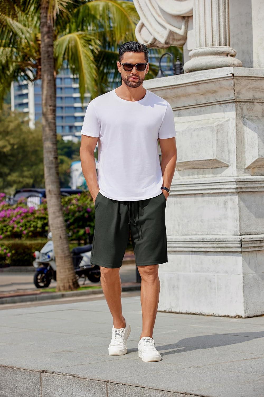 COOFANDY Mens Casual Shorts Stretch Drawstring Summer Beach Shorts Chino Golf Shorts with Pockets(Deep Green)