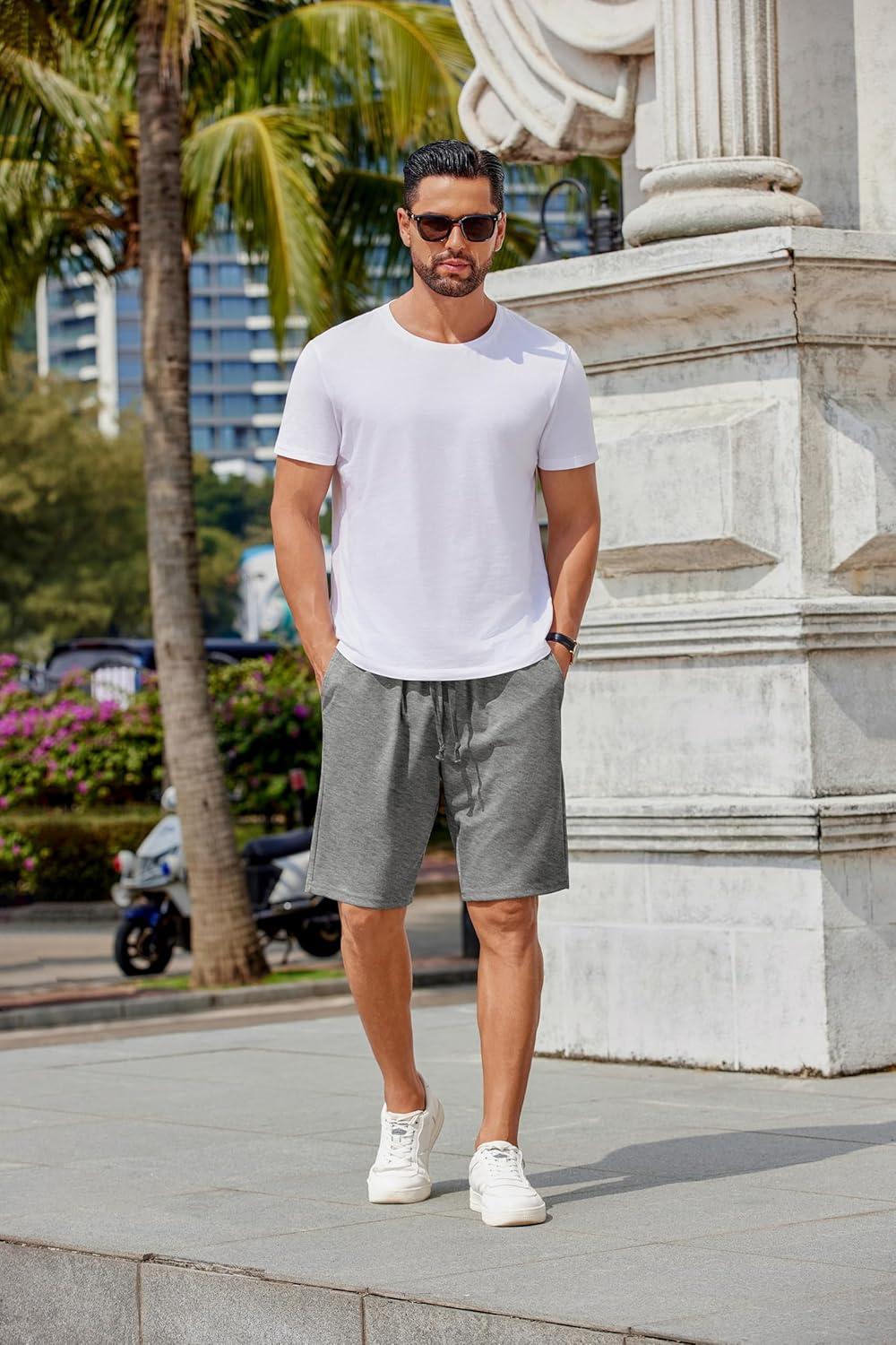 COOFANDY Mens Casual Shorts Stretch Drawstring Summer Beach Shorts Chino Golf Shorts with Pockets(Grey)