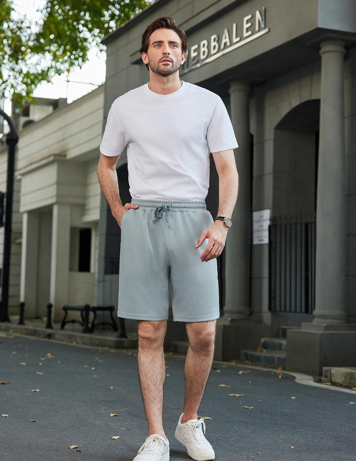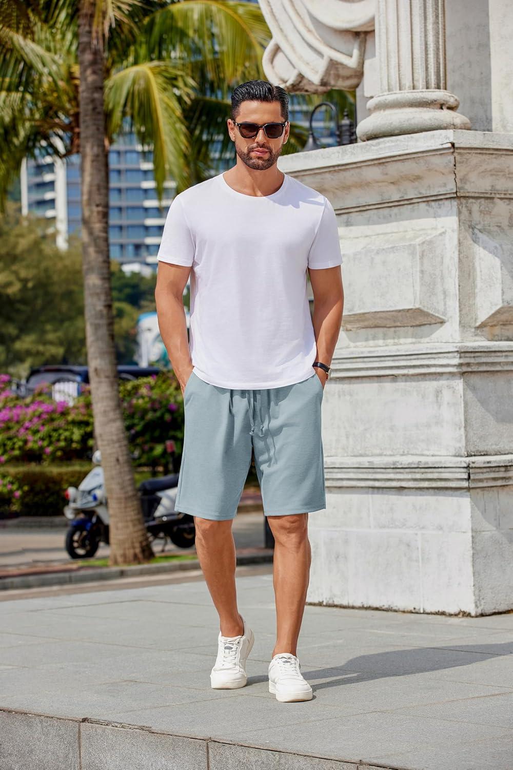COOFANDY Mens Casual Shorts Stretch Drawstring Summer Beach Shorts Chino Golf Shorts with Pockets(Light Blue)