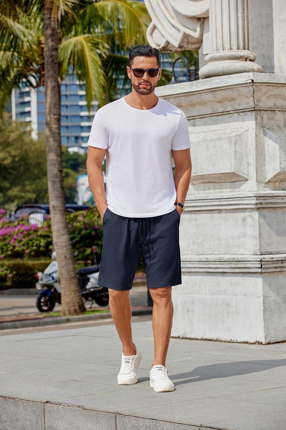 COOFANDY Mens Casual Shorts Stretch Drawstring Summer Beach Shorts Chino Golf Shorts with Pockets(Navy Blue)