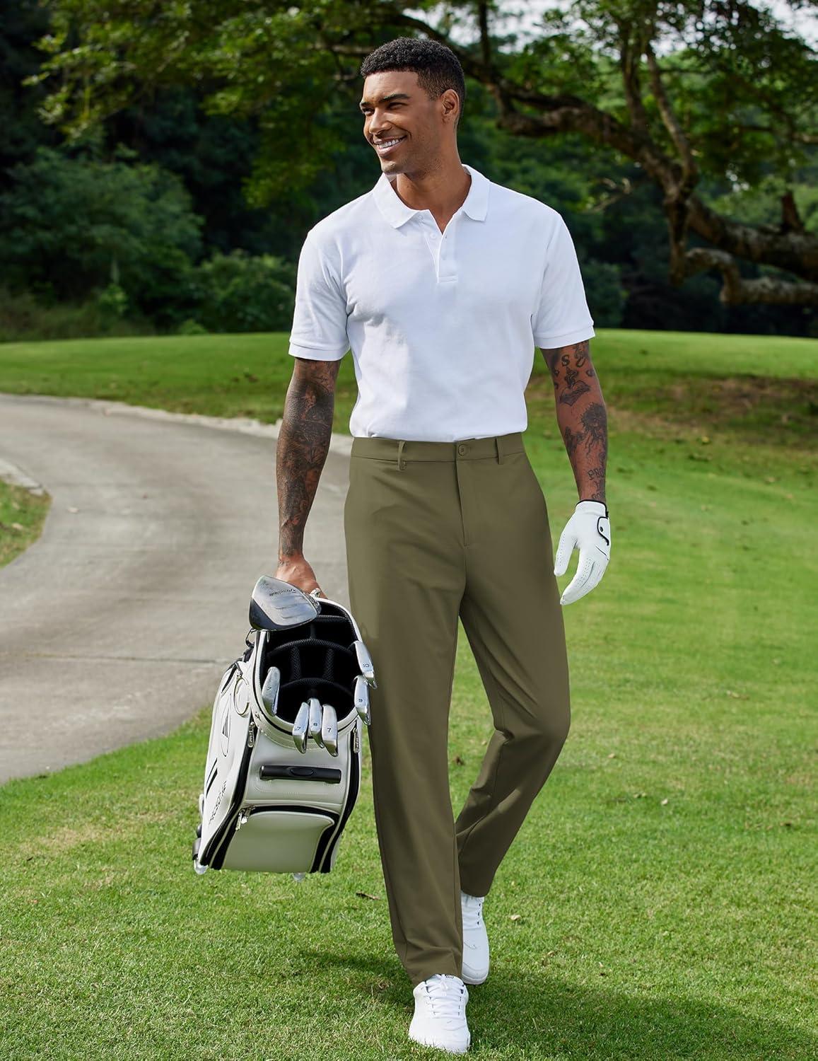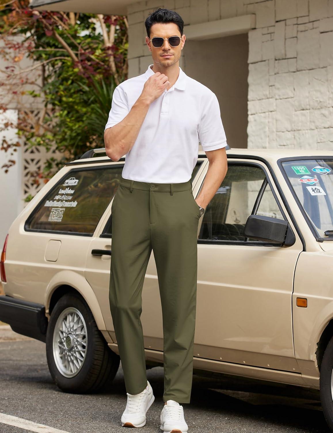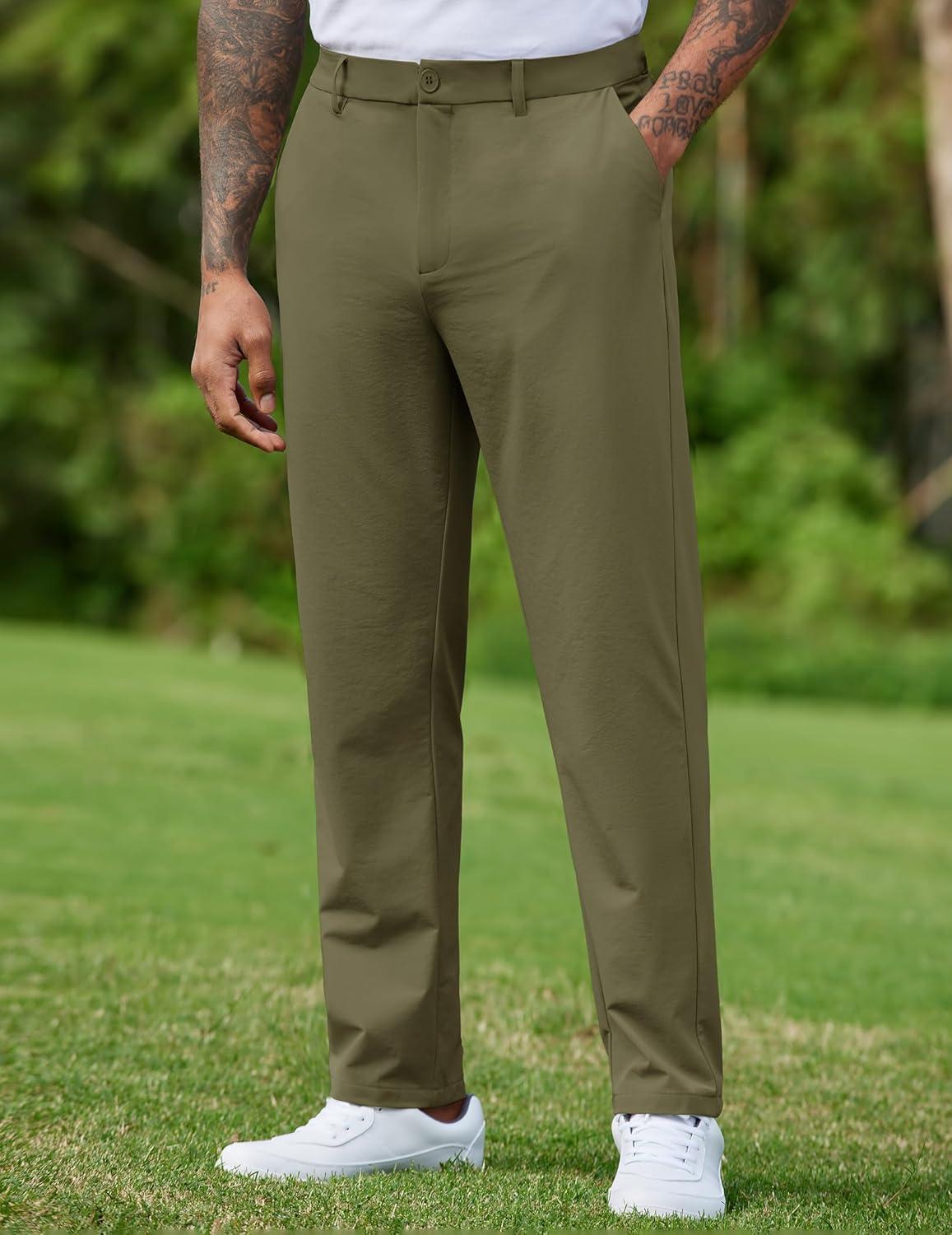 COOFANDY Mens Golf Pants Stretch Work Dress Pants Quick Dry Lightweight Pants Casual Slim Fit Slacks with Pockets(Army Green)
