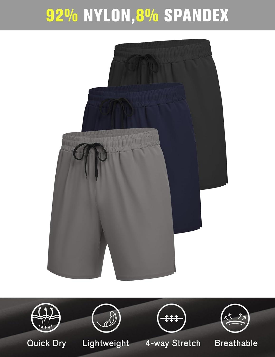 COOFANDY Men’s 3 Pack Athletic Running Shorts Gym Workout Short Quick Dry Sports Short with Pockets(Black/Dark Grey/Navy Blue (1 Pack of 3))