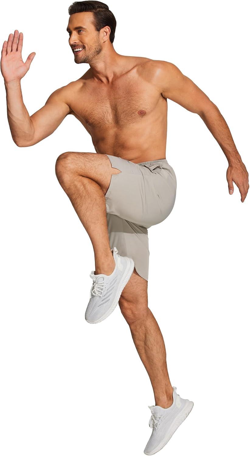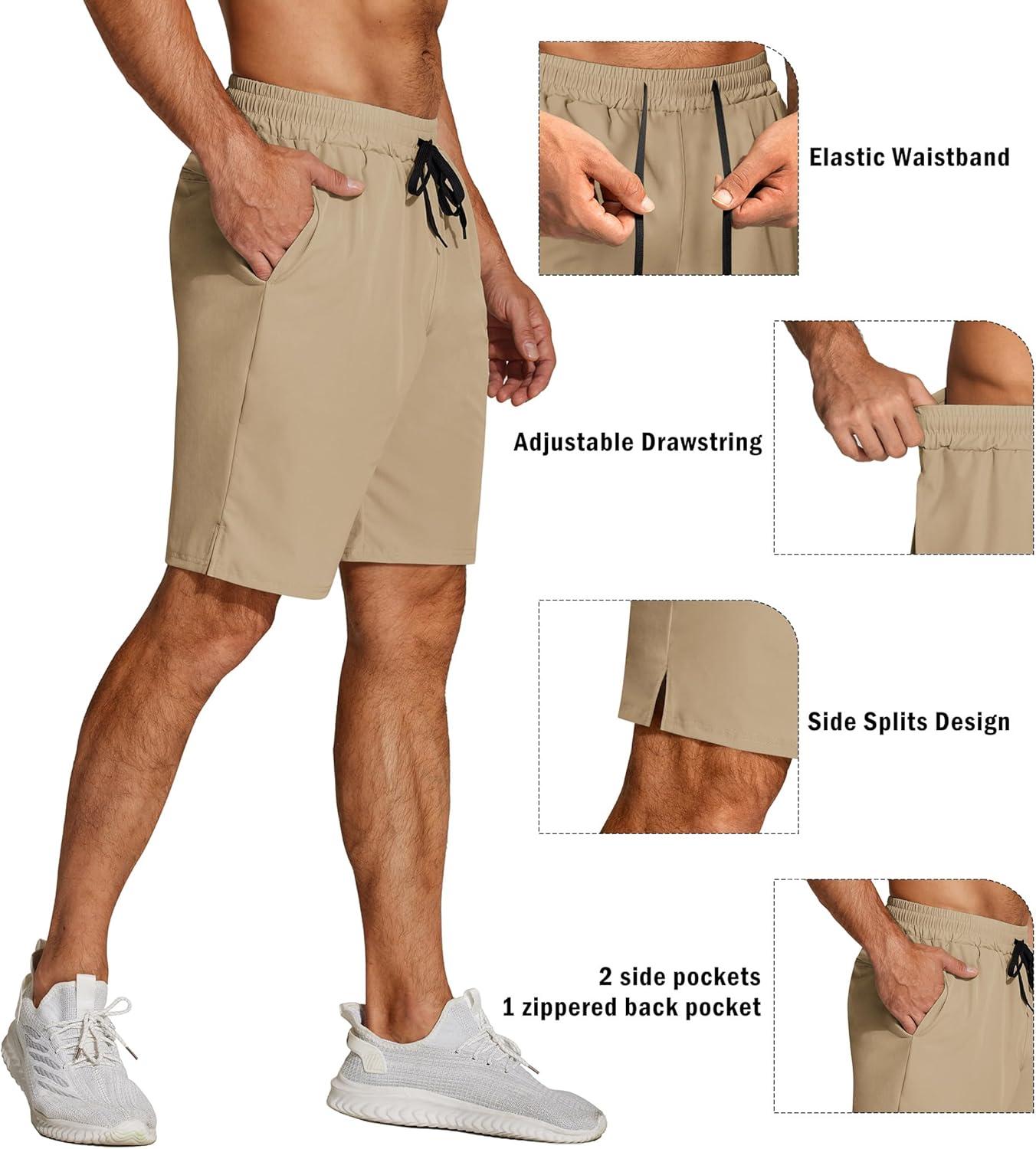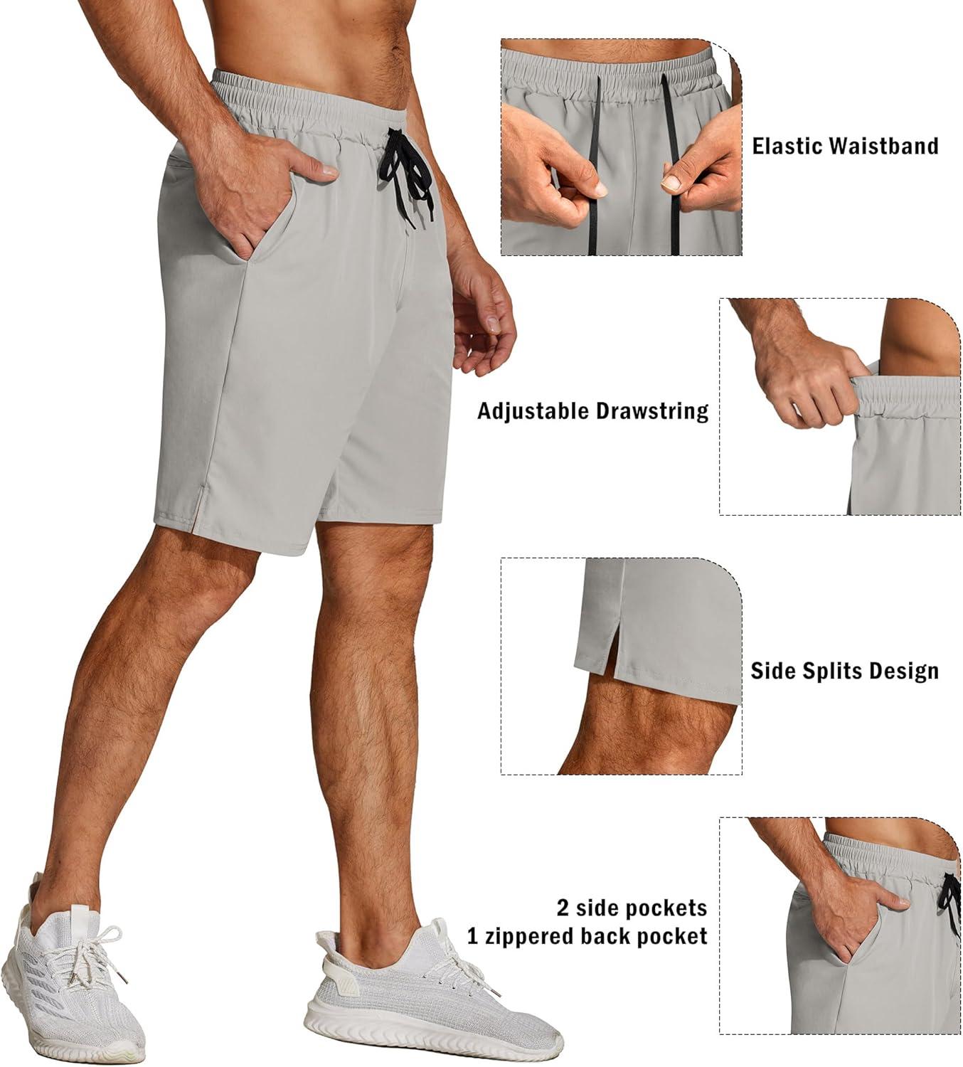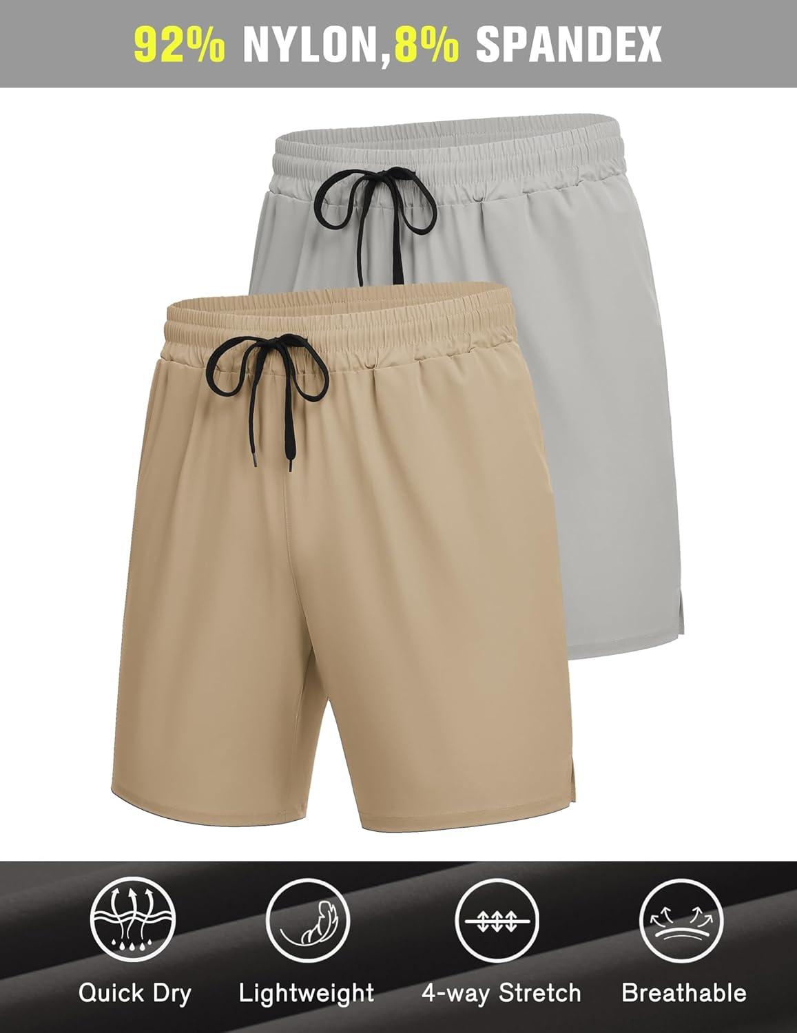 COOFANDY Men’s 3 Pack Athletic Running Shorts Gym Workout Short Quick Dry Sports Short with Pockets(Khaki/Grey)