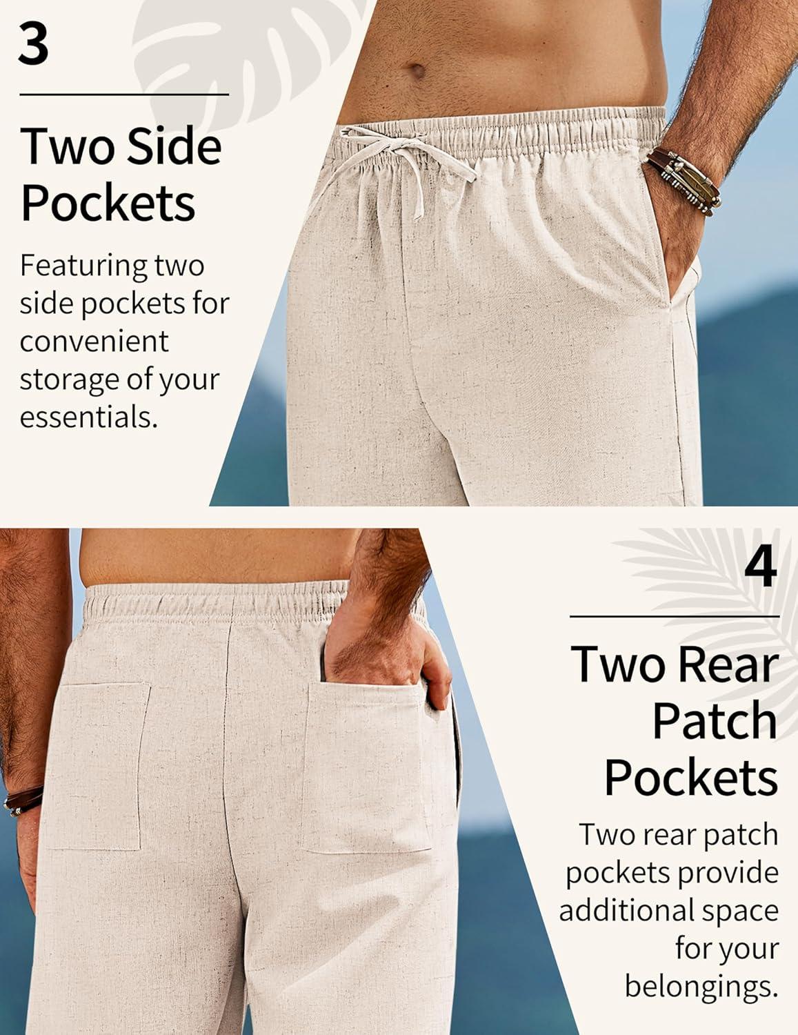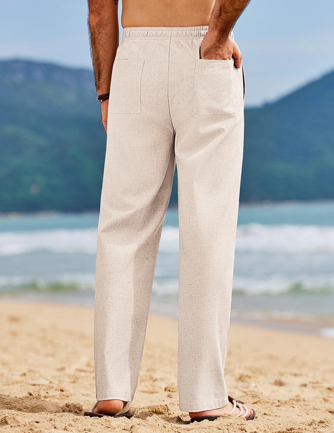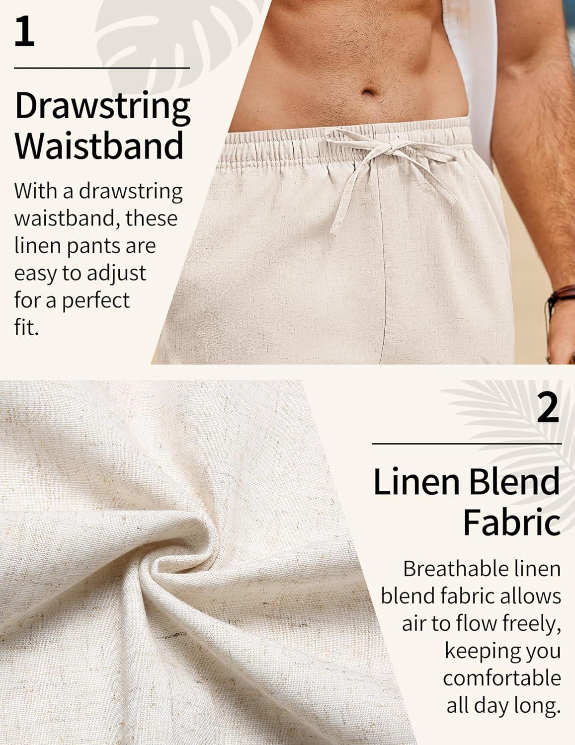 COOFANDY Men’s Linen Pants Casual Loose Fit Beach Summer Yoga Pants Lightweight Drawstring Linen Trousers(Light Beige)