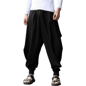 COOFANDY Men Hippie Harem Pants Baggy Linen Cotton Boho Yoga Pants Summer Beach Pants Casual Drop Crotch Trouser(Black)