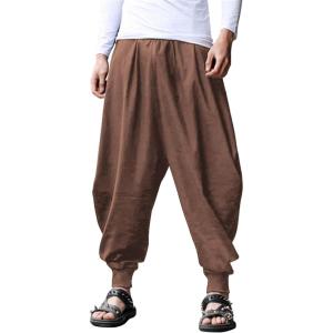 COOFANDY Men Hippie Harem Pants Baggy Linen Cotton Boho Yoga Pants Summer Beach Pants Casual Drop Crotch Trouser(Brown)