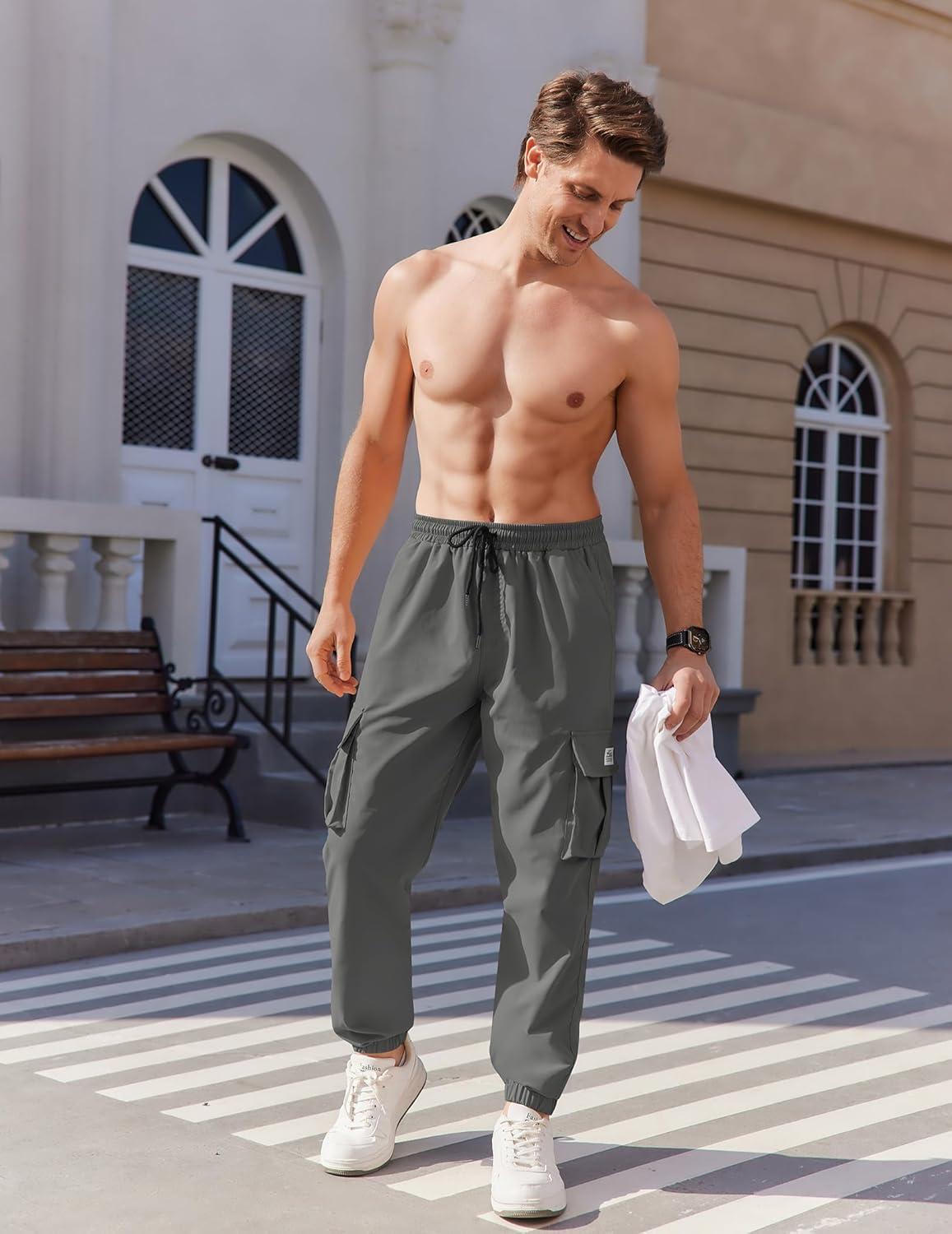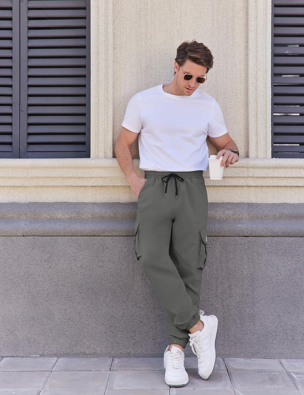 COOFANDY Mens Casual Joggers Pants Stretch Waist Drawstring Cargo Pants Tapered Sweatpants with Pockets